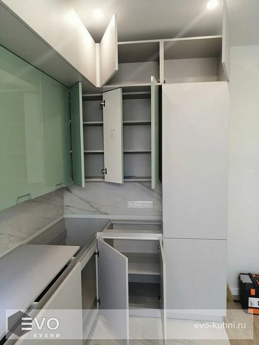 Кухни все изготавливаются по индивидуальному заказу. Мы подготовим дизайн-проект под любое помещение и конфигурацию. В зависимости от выбранных фасадов сможем изготовить нестандартные модули и размеры. Однако есть редкие исключения видов фасадов, по которым невозможны нестандарты, об этом вас предупредит дизайнер при выборе материалов для проекта.