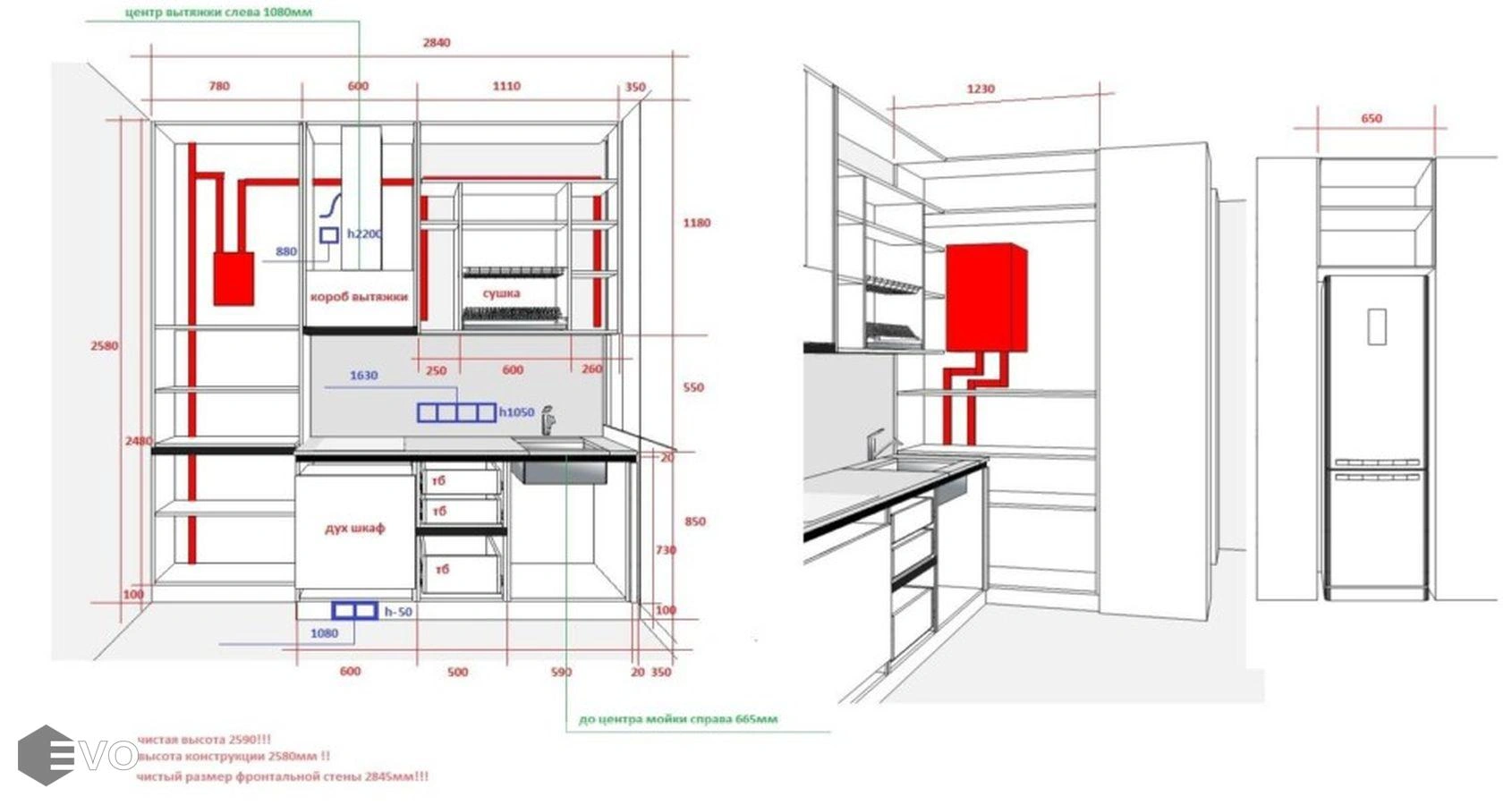 Дизайн-проект, максимально удовлетворяющий вашим пожеланиям, мы делаем бесплатно. Наши менеджеры-дизайнеры помогут вам определиться с моделью вашей будущей кухни, грамотно подберут встраиваемую технику, подберут цветовую гамму самой кухни исходя из стилистики интерьера и пожеланий клиента, составят технически грамотный проект под размеры помещения.