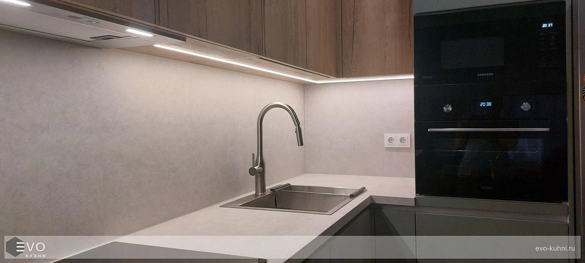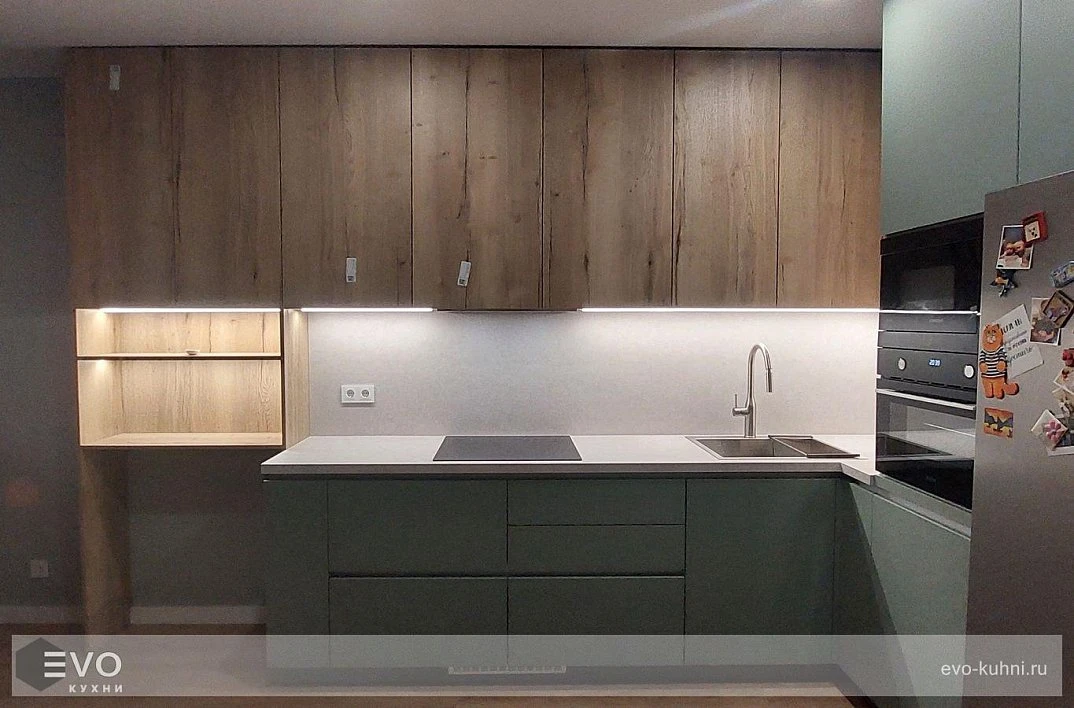 Кухни все изготавливаются по индивидуальному заказу. Мы подготовим дизайн-проект под любое помещение и конфигурацию. В зависимости от выбранных фасадов сможем изготовить нестандартные модули и размеры. Однако есть редкие исключения видов фасадов, по которым невозможны нестандарты, об этом вас предупредит дизайнер при выборе материалов для проекта.