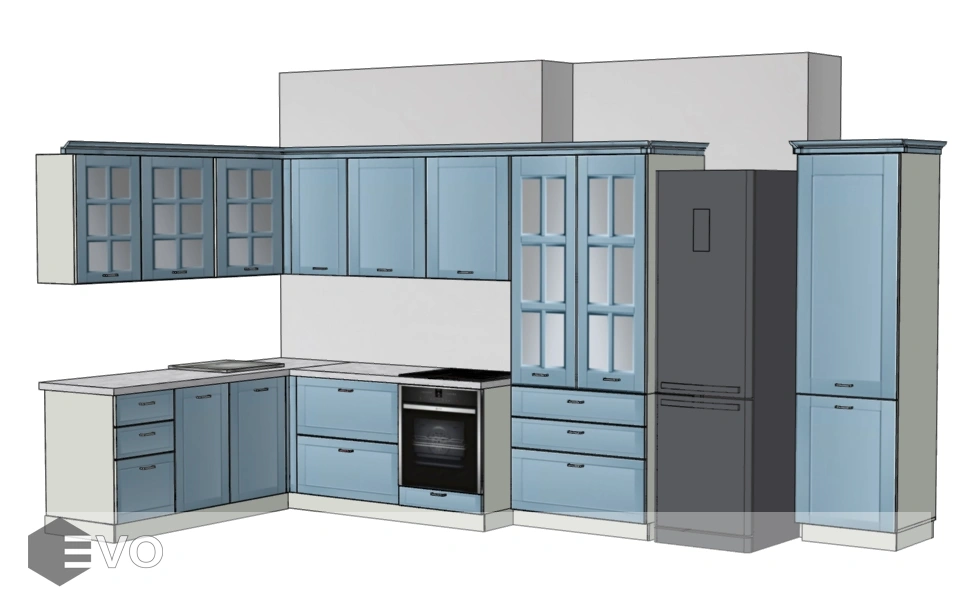 Кухни все изготавливаются по индивидуальному заказу. Мы подготовим дизайн-проект под любое помещение и конфигурацию. В зависимости от выбранных фасадов сможем изготовить нестандартные модули и размеры. Однако есть редкие исключения видов фасадов, по которым невозможны нестандарты, об этом вас предупредит дизайнер при выборе материалов для проекта.
