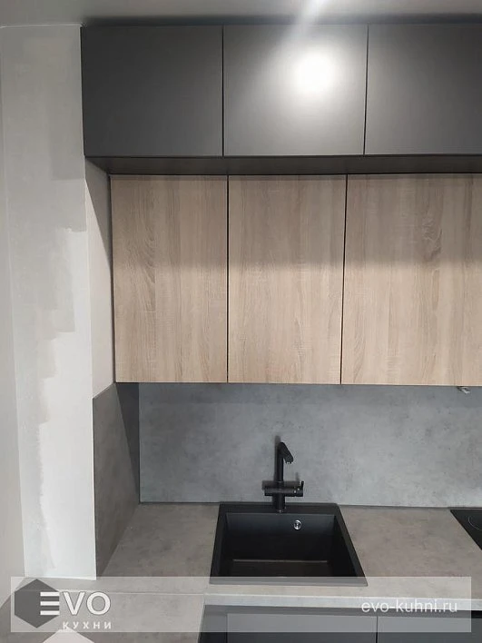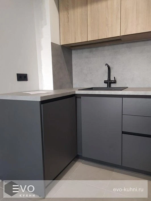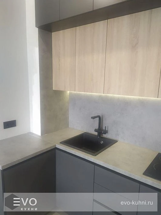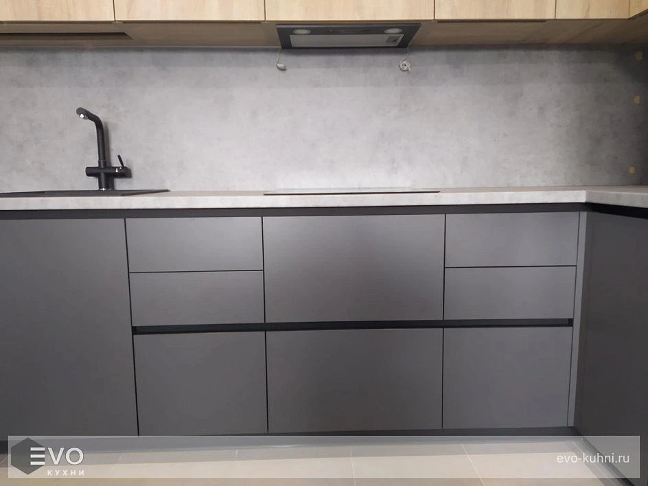 - Столешница: влагостойкий пластик 38мм F186 ST9 Бетон Чикаго светло-серый•Мойка и смеситель клиента,