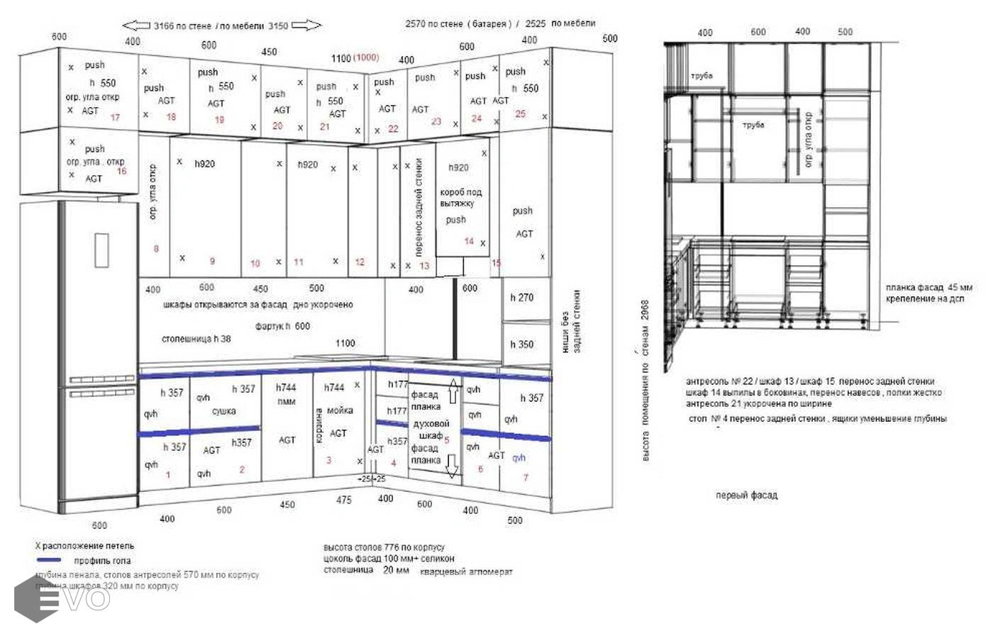 *в стоимость включено мебель, столешница, сушка, ручки Голо профиль. Замер, доставка и сборка .