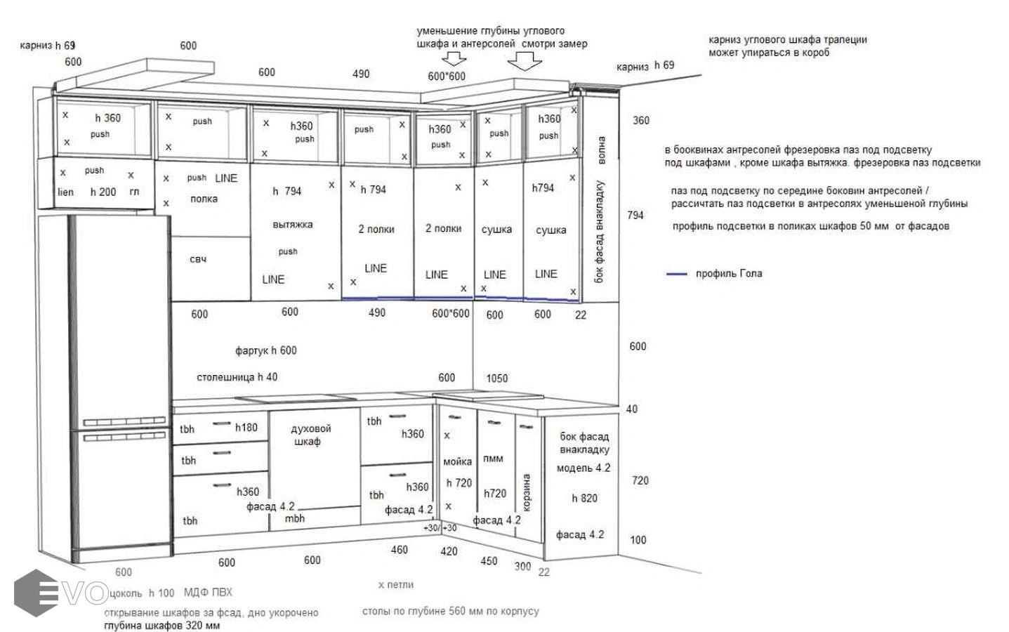Кухни все изготавливаются по индивидуальному заказу. Мы подготовим дизайн-проект под любое помещение и конфигурацию. В зависимости от выбранных фасадов сможем изготовить нестандартные модули и размеры. Однако есть редкие исключения видов фасадов, по которым невозможны нестандарты, об этом вас предупредит дизайнер при выборе материалов для проекта.