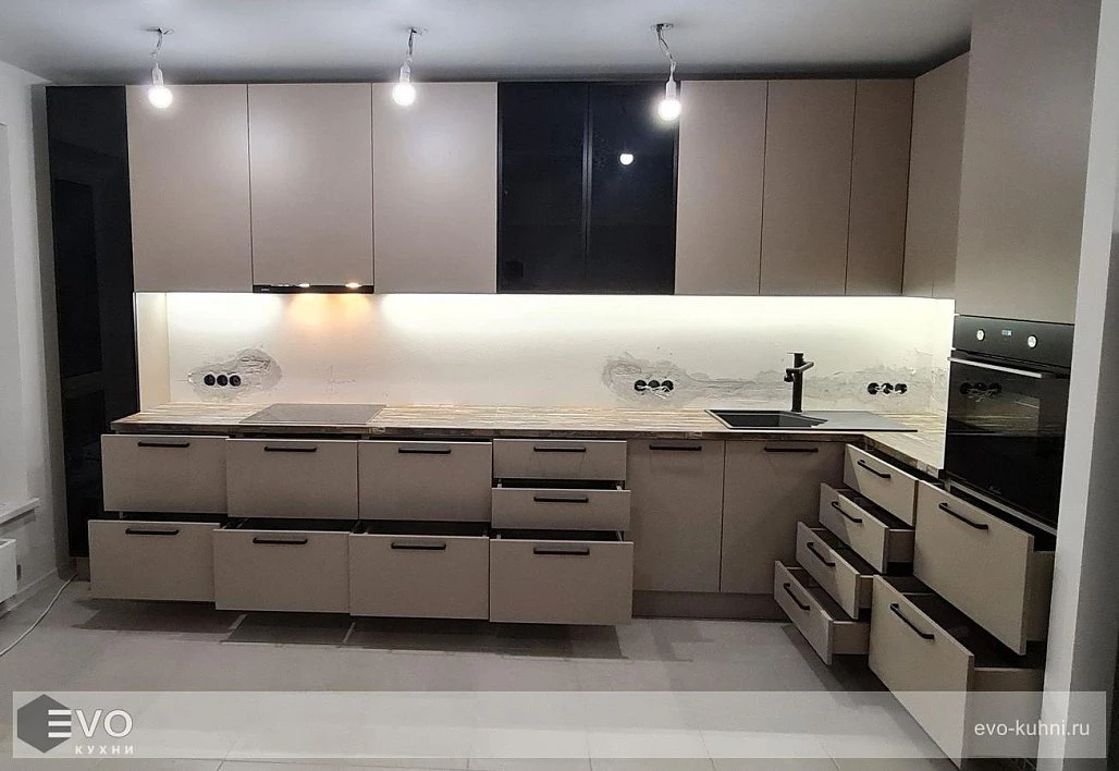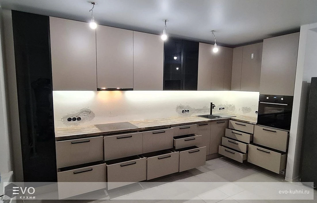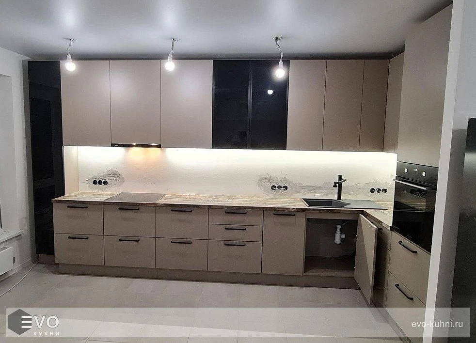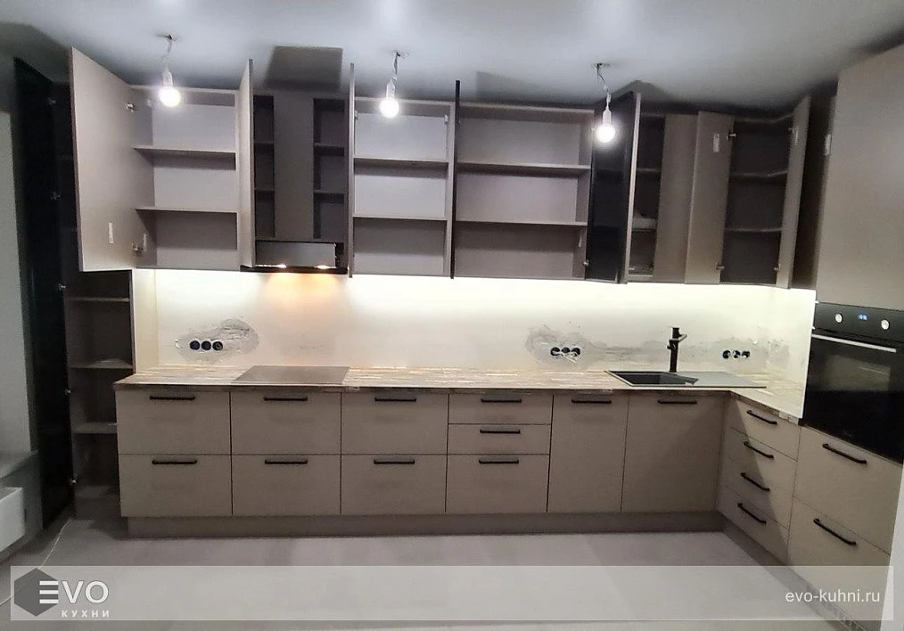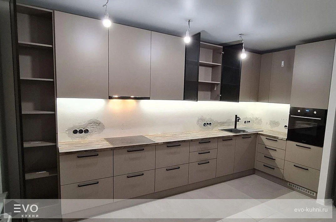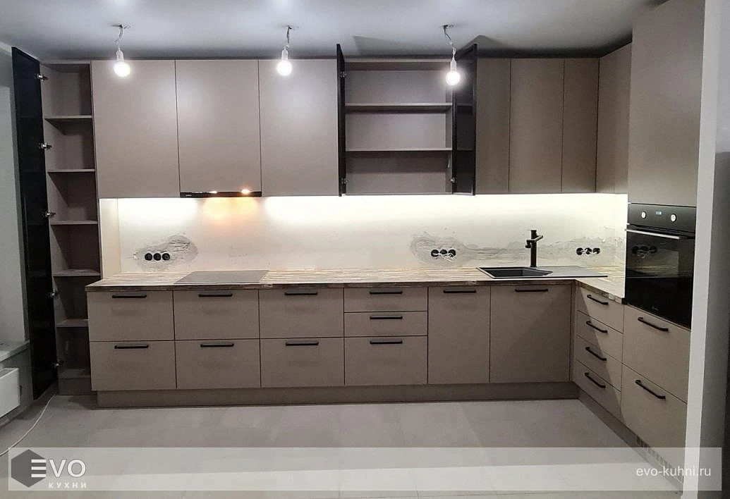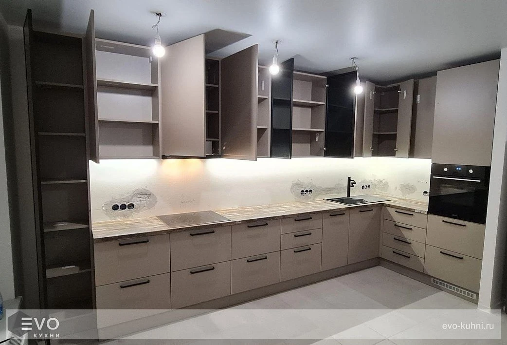 Кухни все изготавливаются по индивидуальному заказу. Мы подготовим дизайн-проект под любое помещение и конфигурацию. В зависимости от выбранных фасадов сможем изготовить нестандартные модули и размеры. Однако есть редкие исключения видов фасадов, по которым невозможны нестандарты, об этом вас предупредит дизайнер при выборе материалов для проекта.
