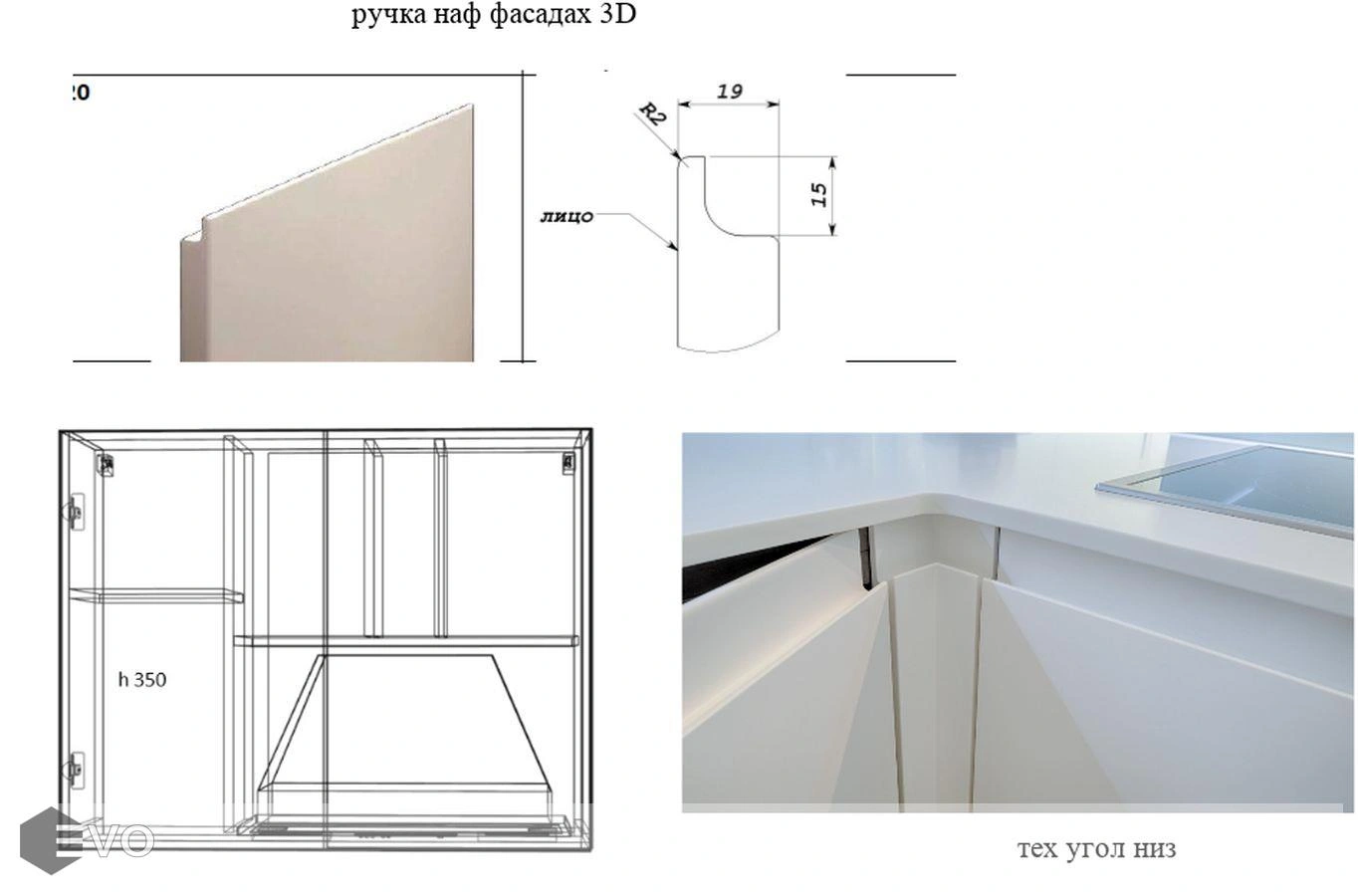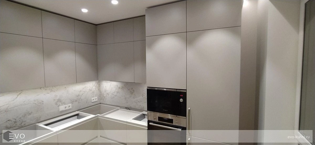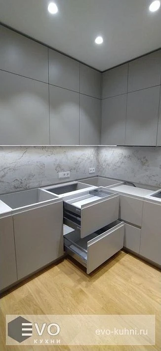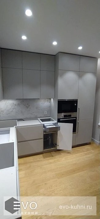 Кухни все изготавливаются по индивидуальному заказу. Мы подготовим дизайн-проект под любое помещение и конфигурацию. В зависимости от выбранных фасадов сможем изготовить нестандартные модули и размеры. Однако есть редкие исключения видов фасадов, по которым невозможны нестандарты, об этом вас предупредит дизайнер при выборе материалов для проекта.