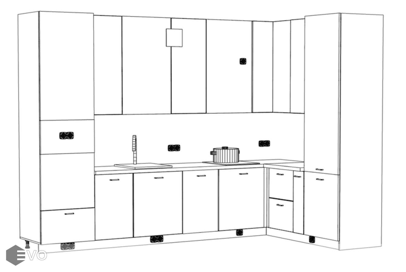 Кухни все изготавливаются по индивидуальному заказу. Мы подготовим дизайн-проект под любое помещение и конфигурацию. В зависимости от выбранных фасадов сможем изготовить нестандартные модули и размеры. Однако есть редкие исключения видов фасадов, по которым невозможны нестандарты, об этом вас предупредит дизайнер при выборе материалов для проекта.