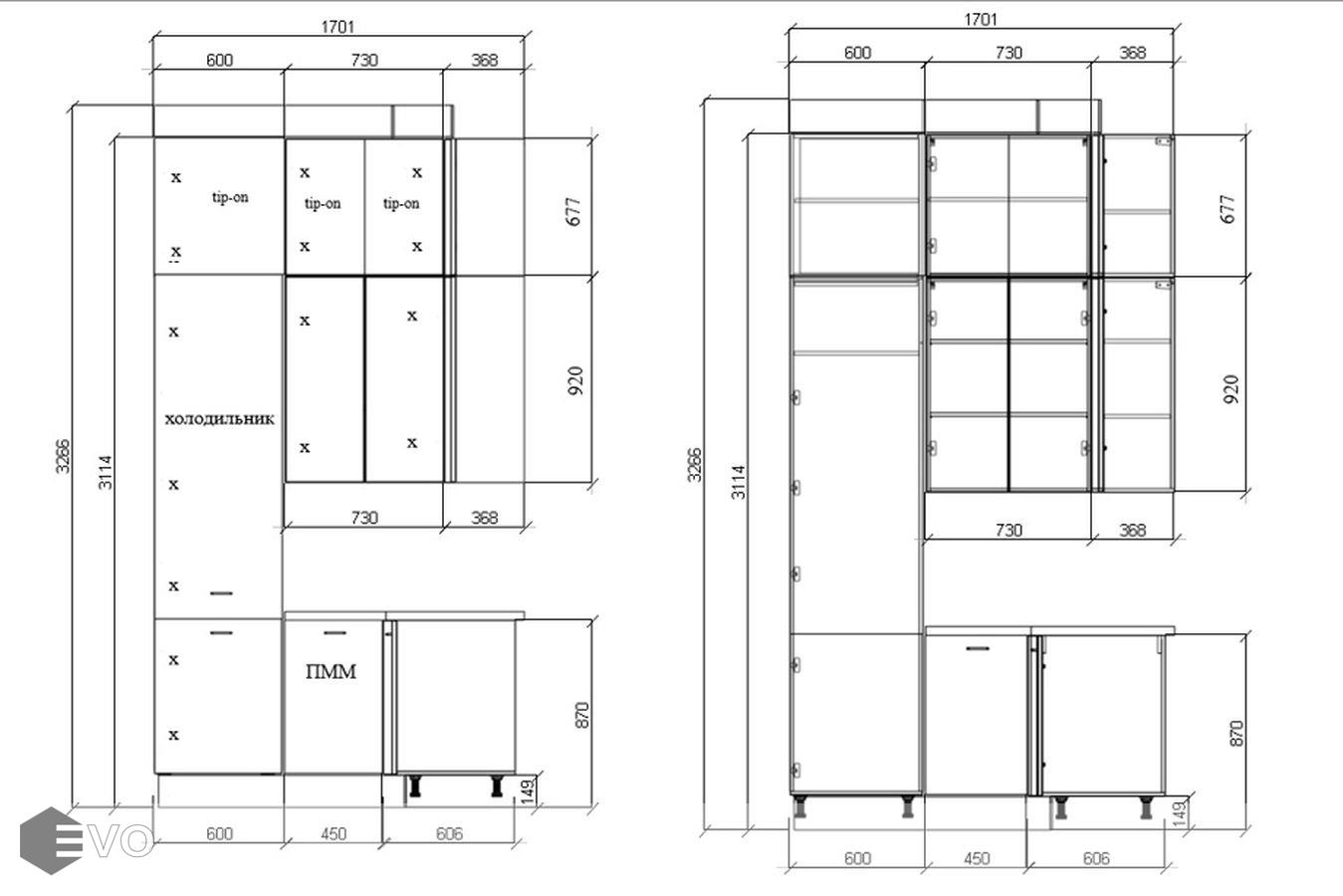 Кухни все изготавливаются по индивидуальному заказу. Мы подготовим дизайн-проект под любое помещение и конфигурацию. В зависимости от выбранных фасадов сможем изготовить нестандартные модули и размеры. Однако есть редкие исключения видов фасадов, по которым невозможны нестандарты, об этом вас предупредит дизайнер при выборе материалов для проекта.