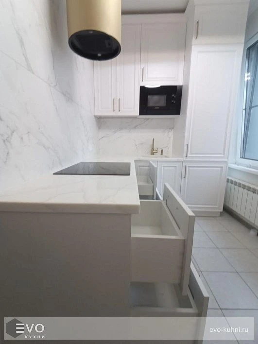 Кухни все изготавливаются по индивидуальному заказу. Мы подготовим дизайн-проект под любое помещение и конфигурацию. В зависимости от выбранных фасадов сможем изготовить нестандартные модули и размеры. Однако есть редкие исключения видов фасадов, по которым невозможны нестандарты, об этом вас предупредит дизайнер при выборе материалов для проекта.