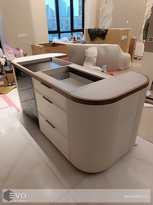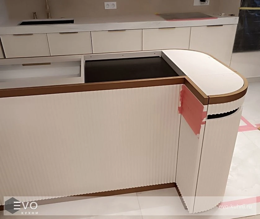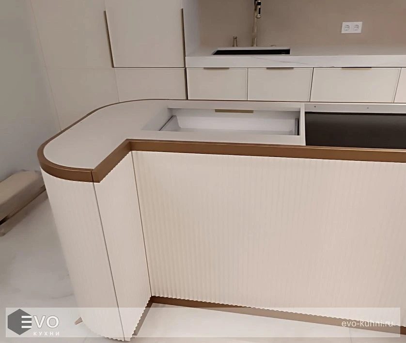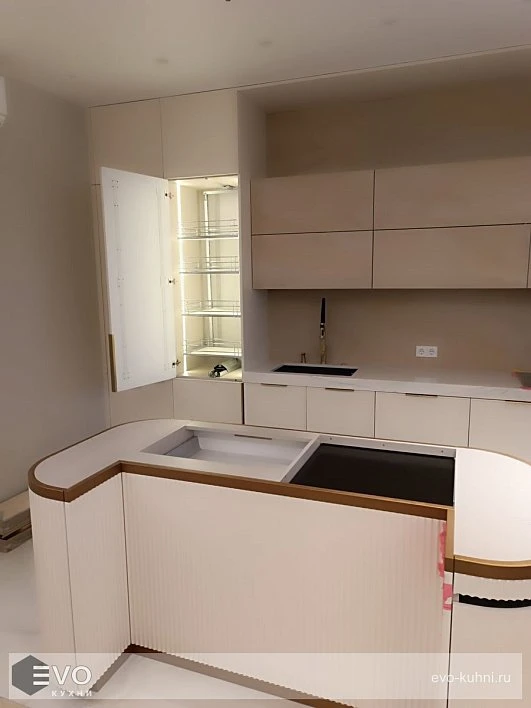 Кухни все изготавливаются по индивидуальному заказу. Мы подготовим дизайн-проект под любое помещение и конфигурацию. В зависимости от выбранных фасадов сможем изготовить нестандартные модули и размеры. Однако есть редкие исключения видов фасадов, по которым невозможны нестандарты, об этом вас предупредит дизайнер при выборе материалов для проекта.