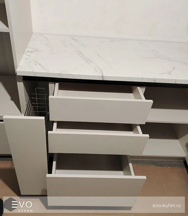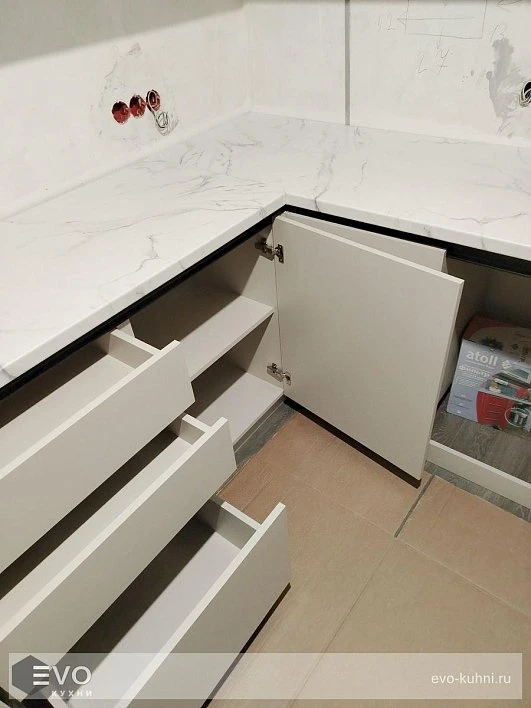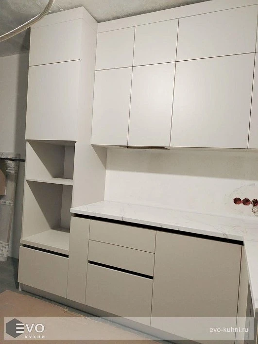 Кухни все изготавливаются по индивидуальному заказу. Мы подготовим дизайн-проект под любое помещение и конфигурацию. В зависимости от выбранных фасадов сможем изготовить нестандартные модули и размеры. Однако есть редкие исключения видов фасадов, по которым невозможны нестандарты, об этом вас предупредит дизайнер при выборе материалов для проекта.