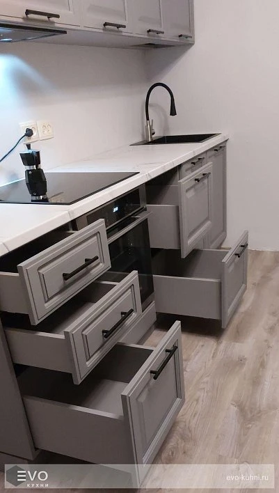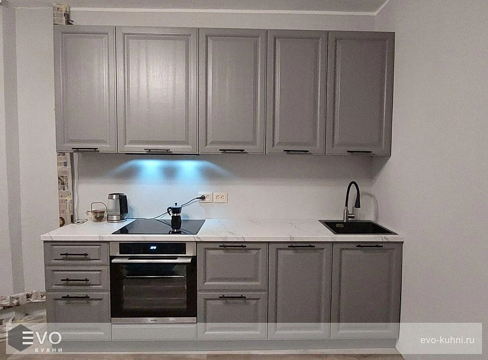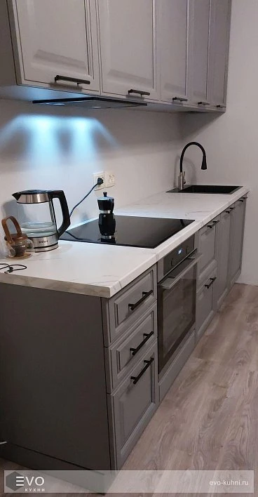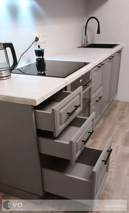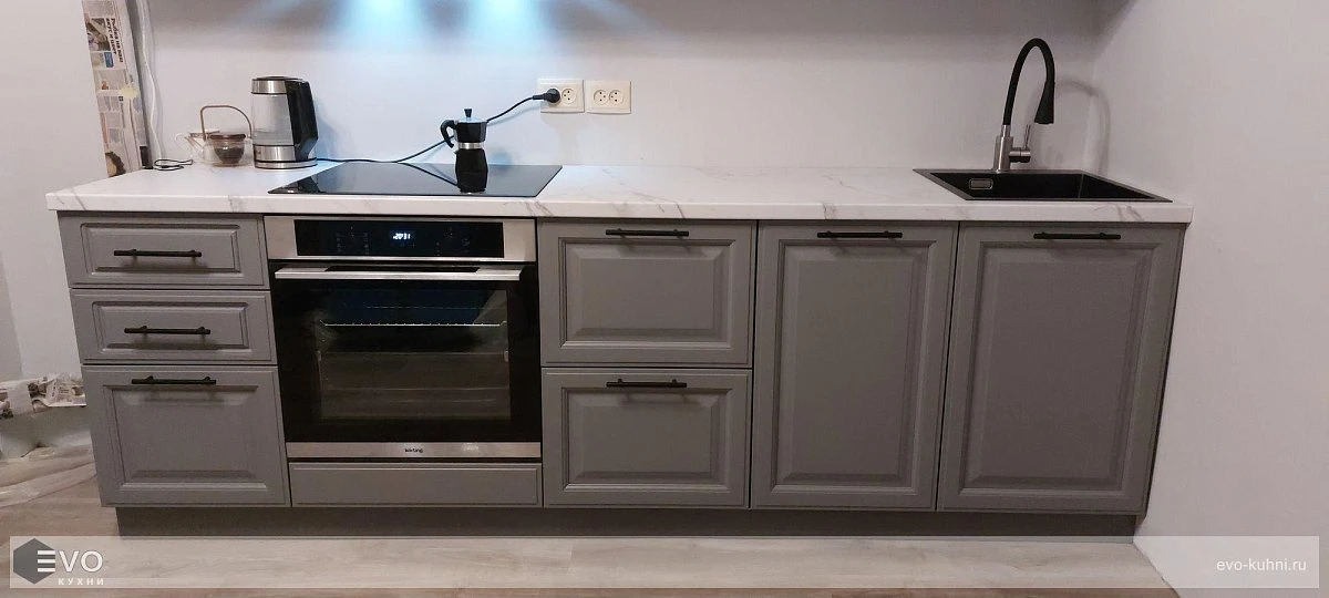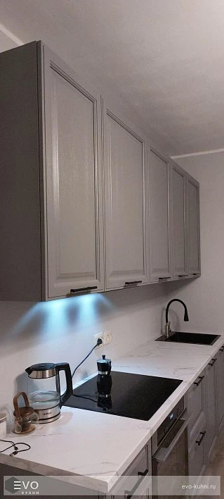 Кухни все изготавливаются по индивидуальному заказу. Мы подготовим дизайн-проект под любое помещение и конфигурацию. В зависимости от выбранных фасадов сможем изготовить нестандартные модули и размеры. Однако есть редкие исключения видов фасадов, по которым невозможны нестандарты, об этом вас предупредит дизайнер при выборе материалов для проекта.