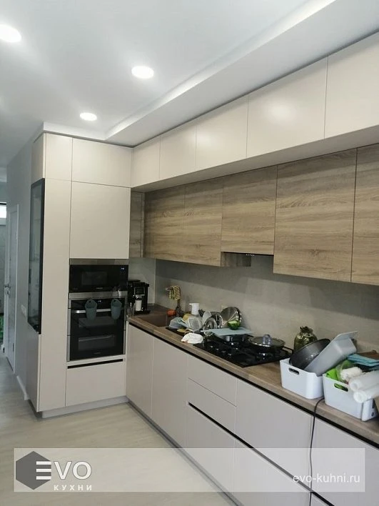 - Фасады: МДФ Пленка Сатин Беж / ЛДСП Egger Н1146 ST10 Дуб Бардолино серый.
