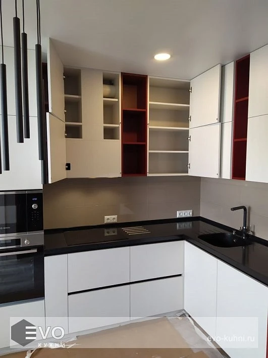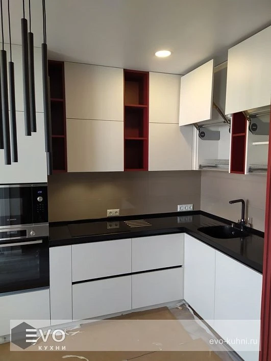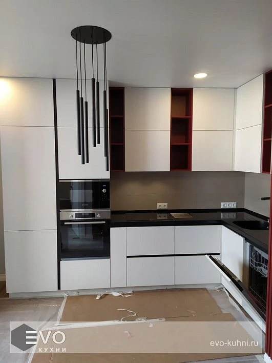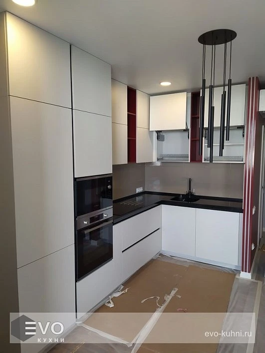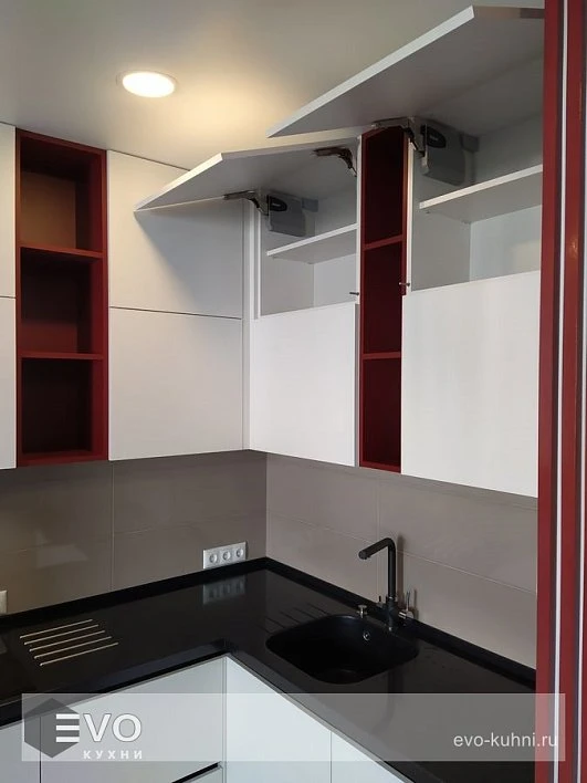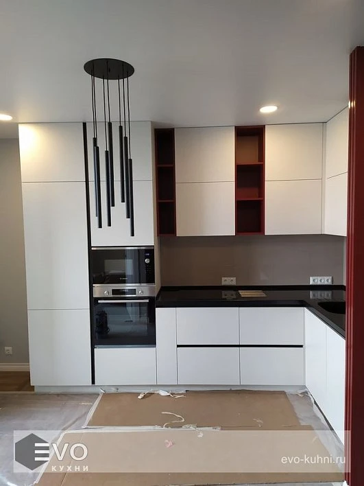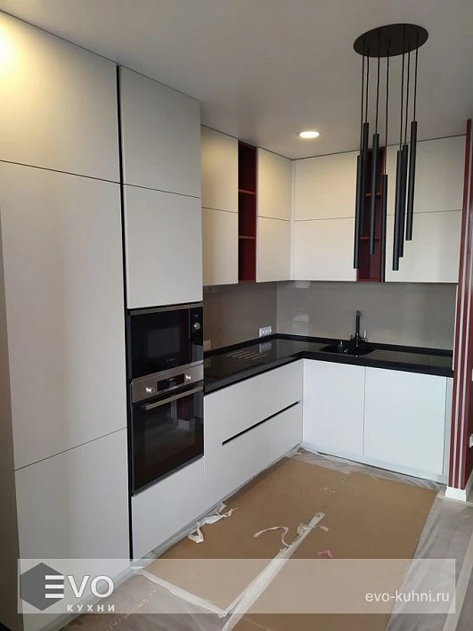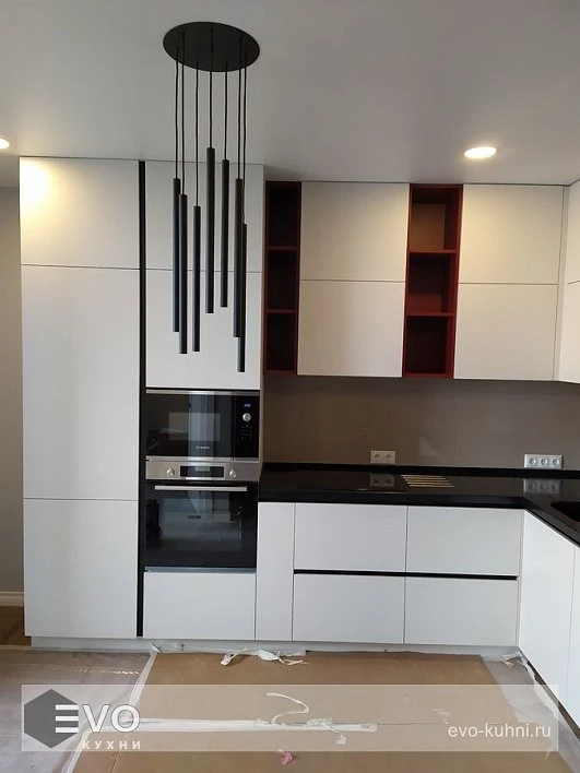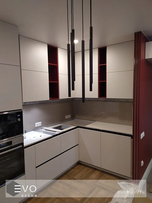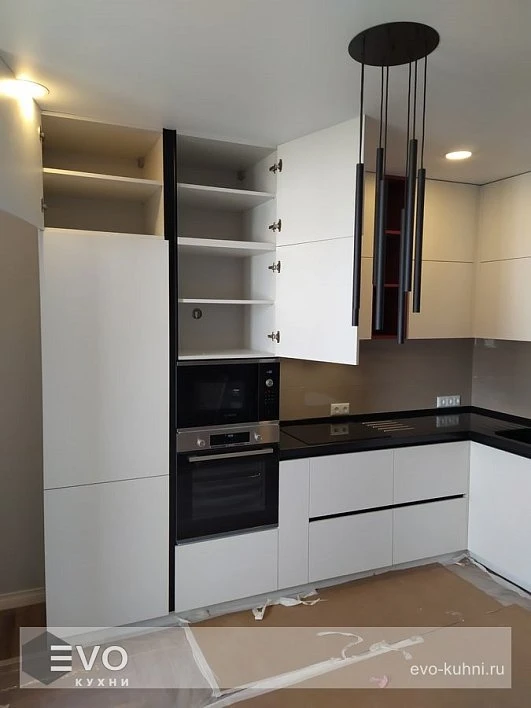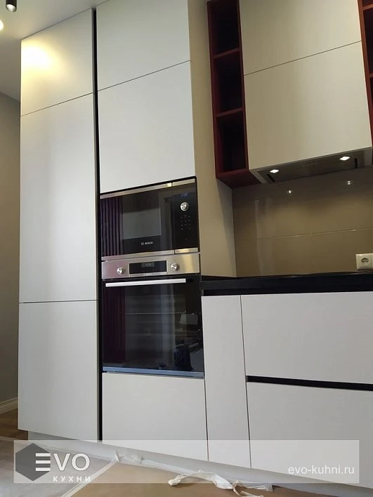- Особенности: скрытые ручки Голо профиль, кухня под потолок.