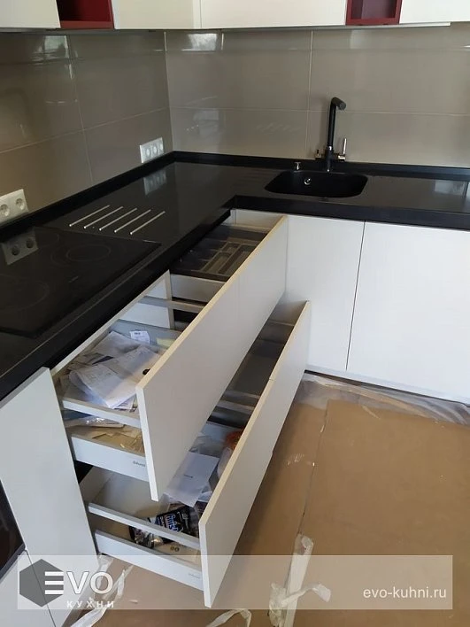 - Столешница: Искусственный камень Grandex А-421 с интегрированным плинтусом.