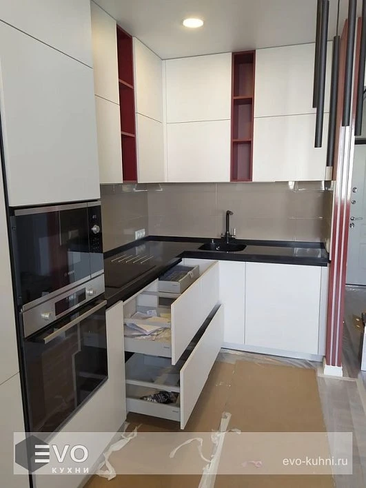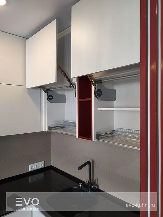 - Фасады: ЛДСП 18мм EGGER U775 ST9 Бело-серый, U311 ST9 Бургундский красный.