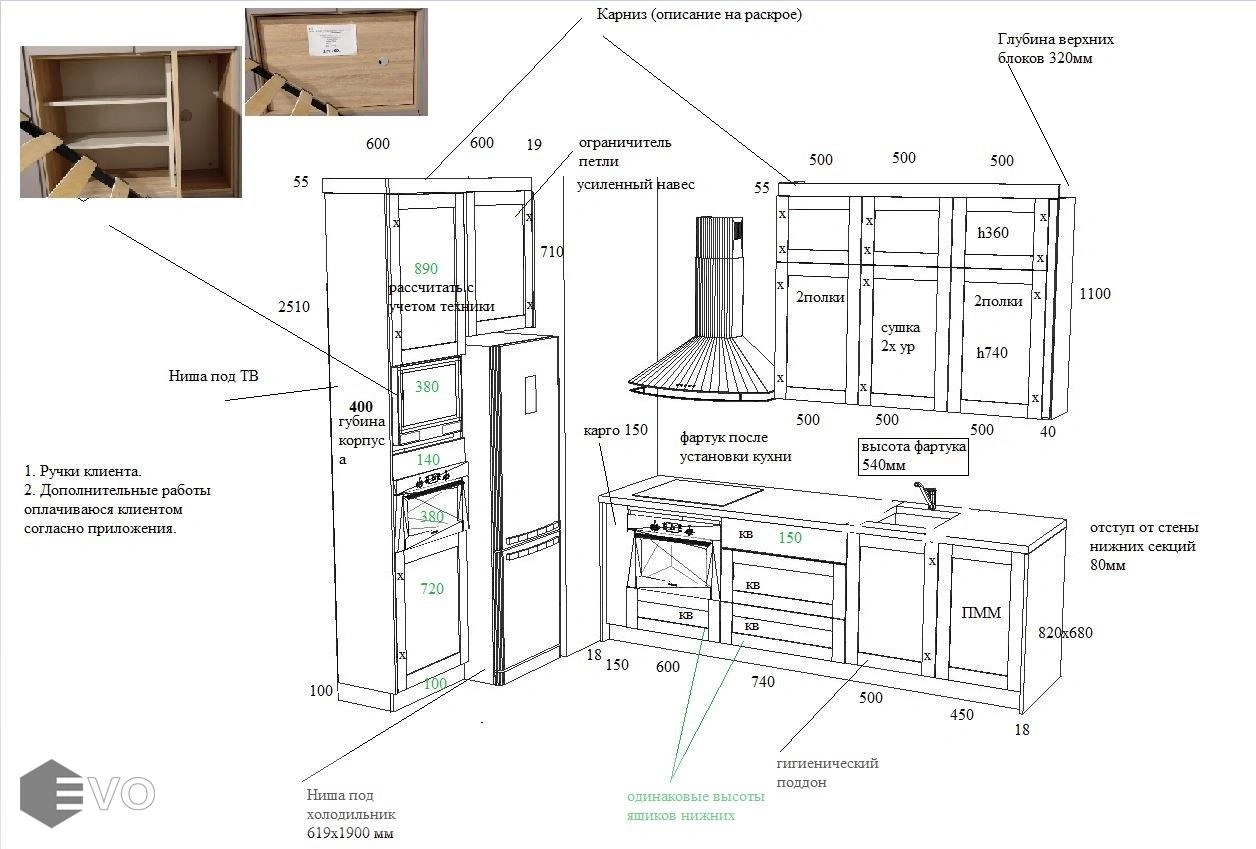 Дизайн-проект, максимально удовлетворяющий вашим пожеланиям, мы делаем бесплатно. Наши менеджеры-дизайнеры помогут вам определиться с моделью вашей будущей кухни, грамотно подберут встраиваемую технику, подберут цветовую гамму самой кухни исходя из стилистики интерьера и пожеланий клиента, составят технически грамотный проект под размеры помещения.