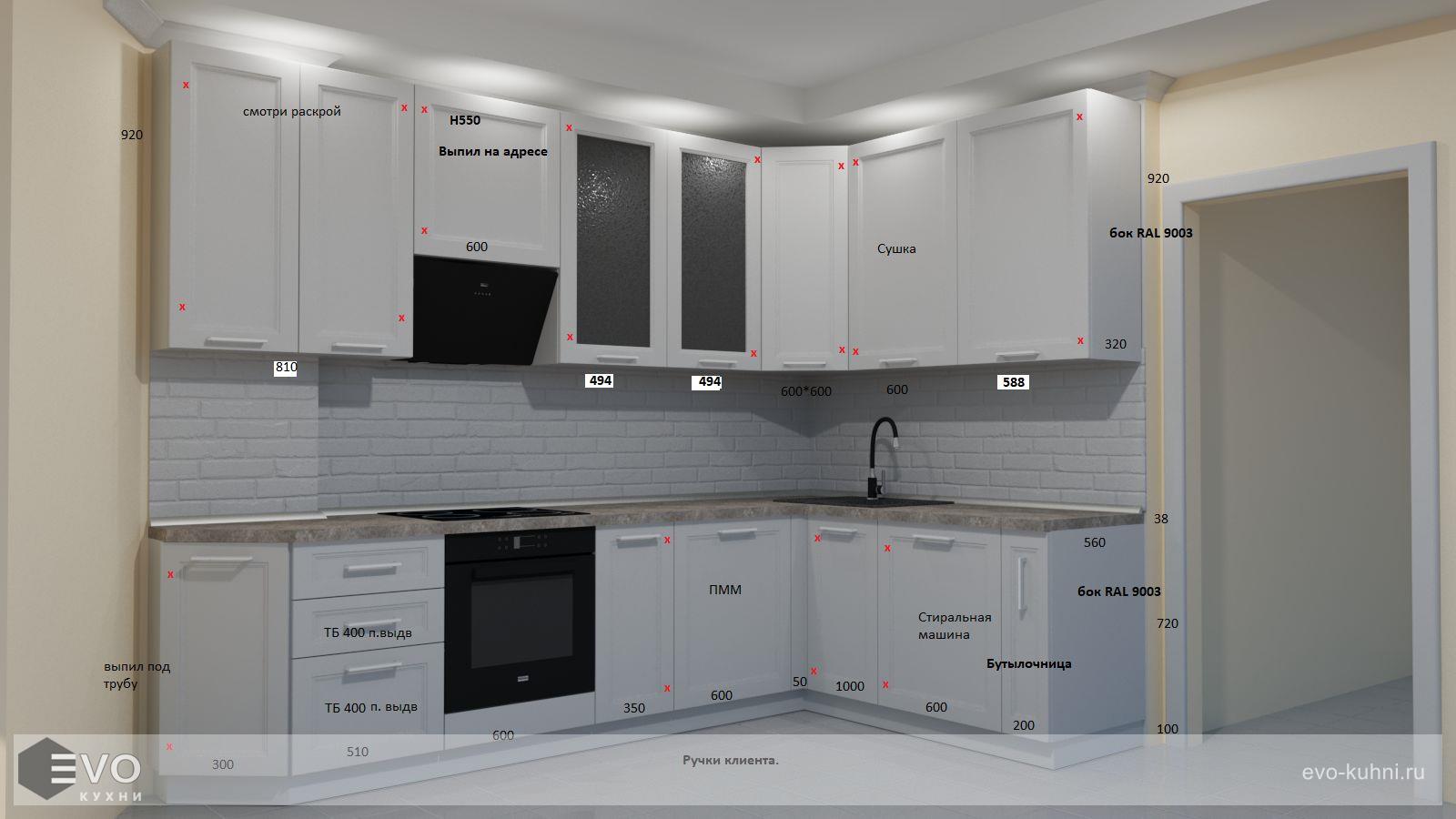 - Фасады: МДФ Эмаль с фрезеровкой RAL 9003 матовый
