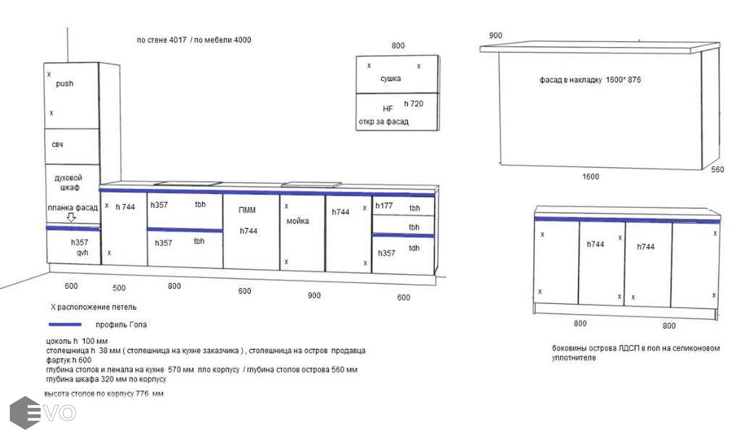 •Размеры: 4000мм,остров 1600*900мм. Высота: 2235мм.