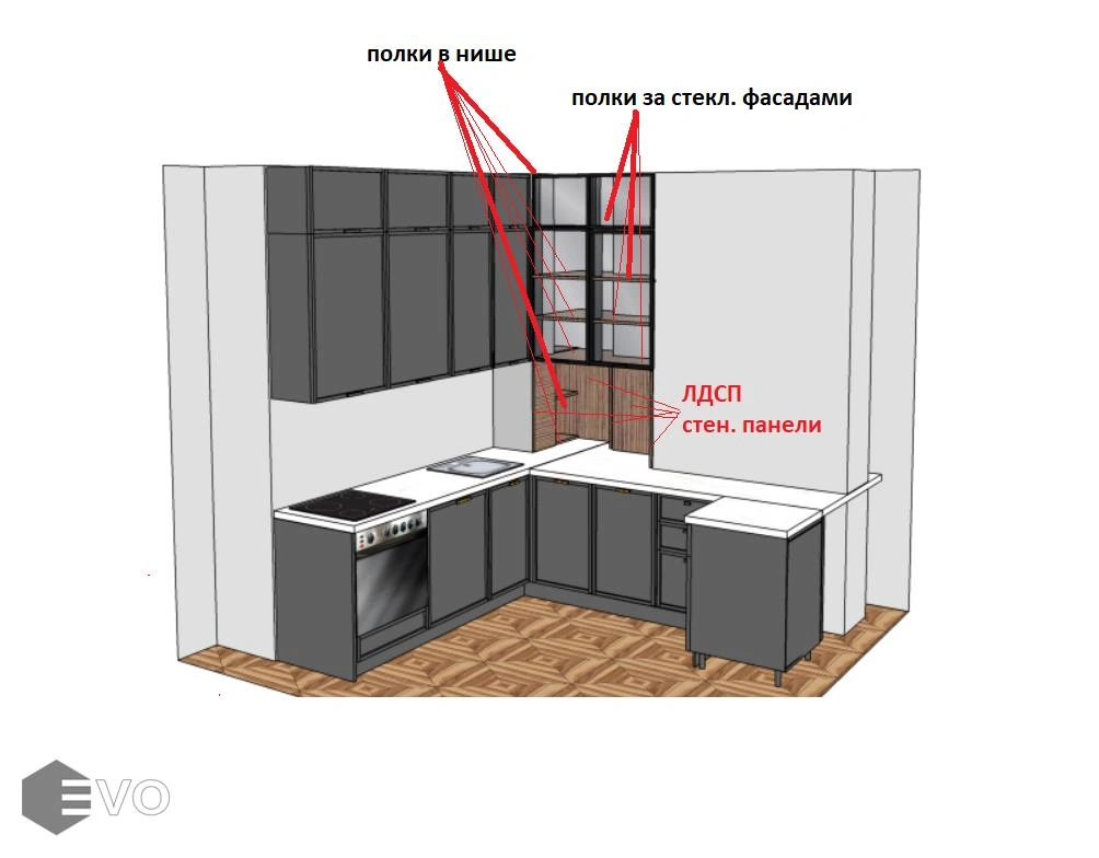 Дизайнеры помогают составить дизайн проект относительно пожеланий клиента после чего делают предварительный расчет т.к стоимость зависит от конфигурации, наполнения кухни, от выбранного материала, цветового исполнения и особенностей проектирования.