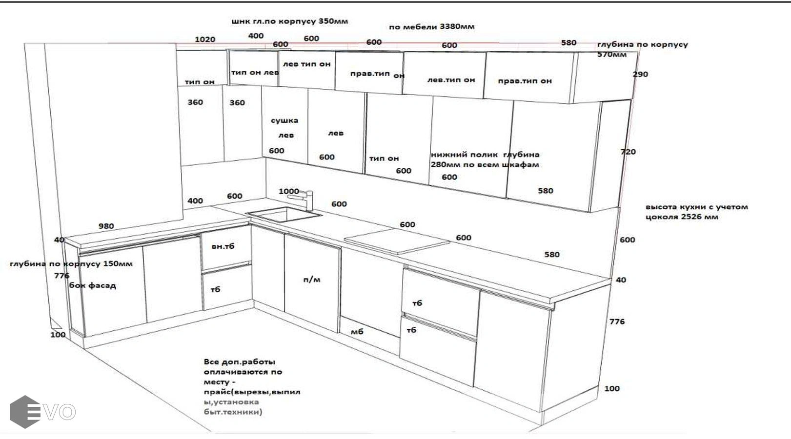 Дизайнеры помогают составить дизайн проект относительно пожеланий клиента после чего делают предварительный расчет т.к стоимость зависит от конфигурации, наполнения кухни, от выбранного материала, цветового исполнения и особенностей проектирования.