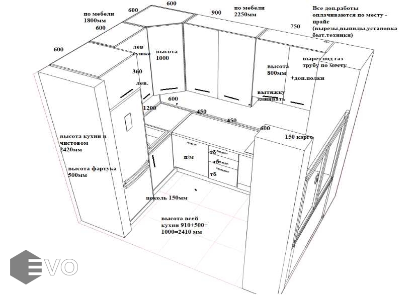 Кухни все изготавливаются по индивидуальному заказу. Мы подготовим дизайн-проект под любое помещение и конфигурацию. В зависимости от выбранных фасадов сможем изготовить нестандартные модули и размеры. Однако есть редкие исключения видов фасадов, по которым невозможны нестандарты, об этом вас предупредит дизайнер при выборе материалов для проекта.