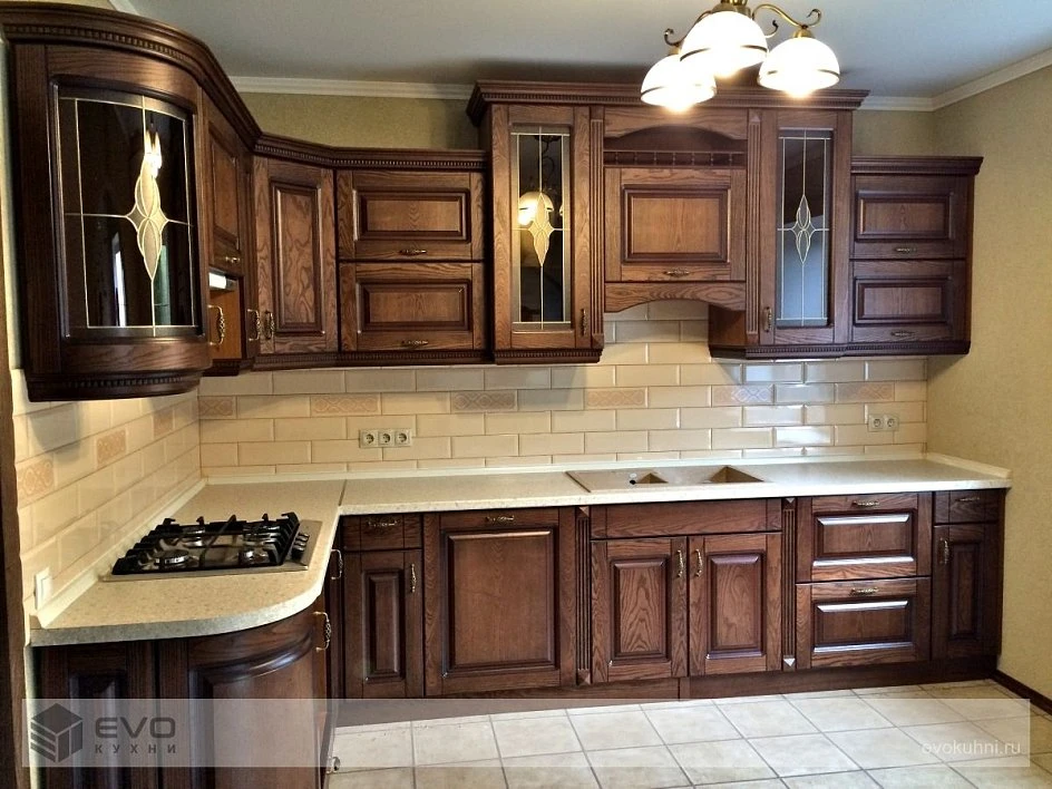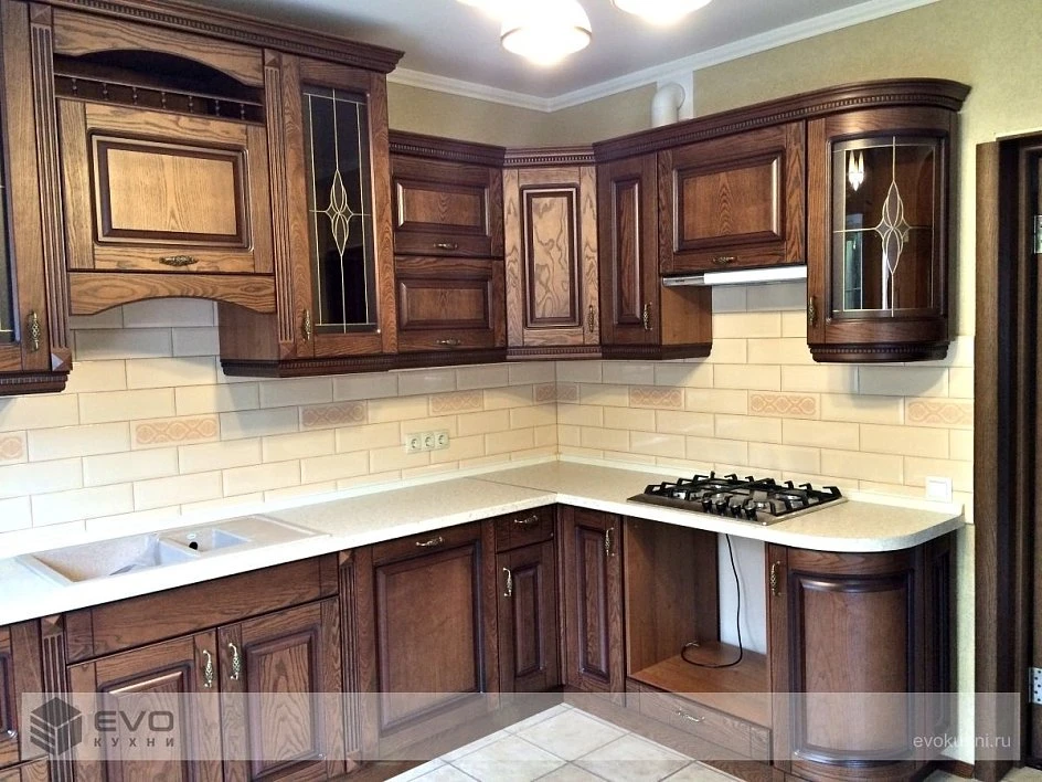 Угловая радиусная кухня прованс Шпон/МДФ/ЛДСП с патиной180х330 см