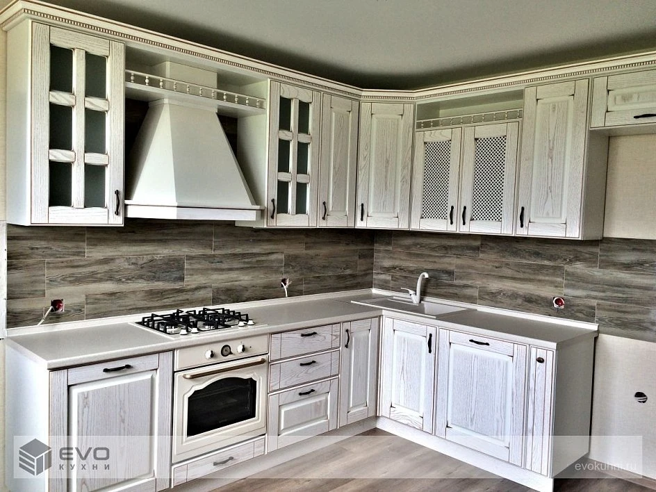 Угловая кухня неоклассика Шпон дерево 270х240 см
