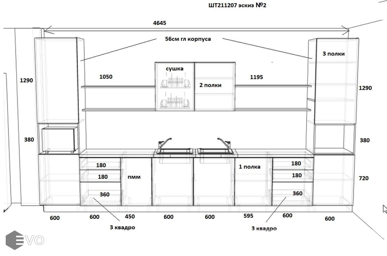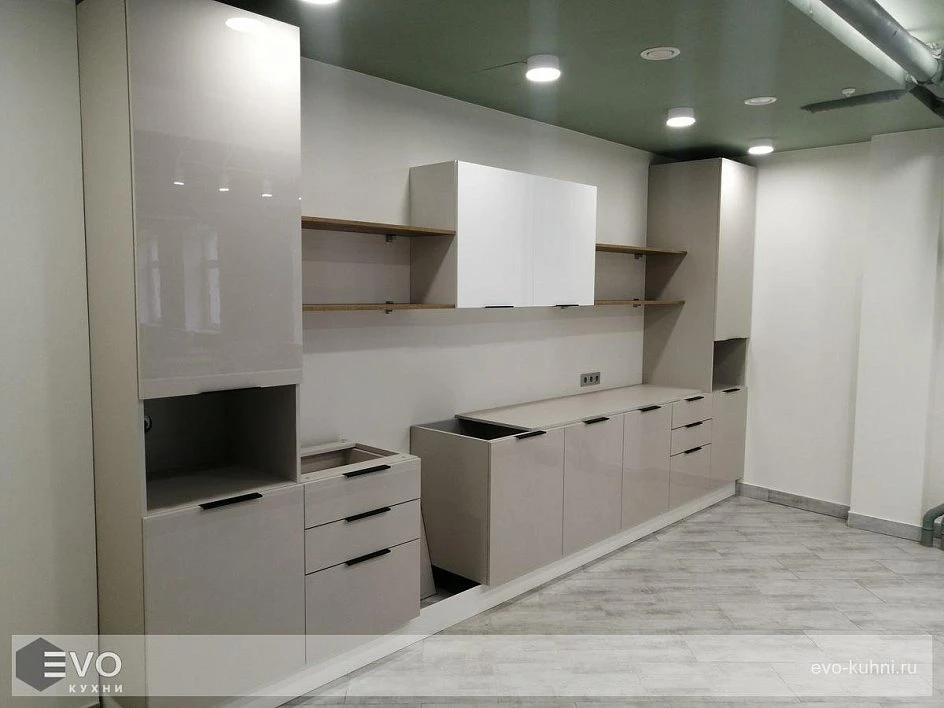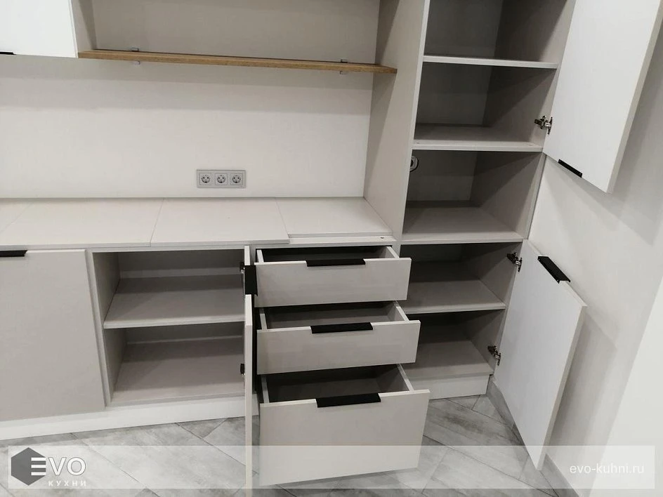 Кухни все изготавливаются по индивидуальному заказу. Мы подготовим дизайн-проект под любое помещение и конфигурацию. В зависимости от выбранных фасадов сможем изготовить нестандартные модули и размеры. Однако есть редкие исключения видов фасадов, по которым невозможны нестандарты, об этом вас предупредит дизайнер при выборе материалов для проекта.