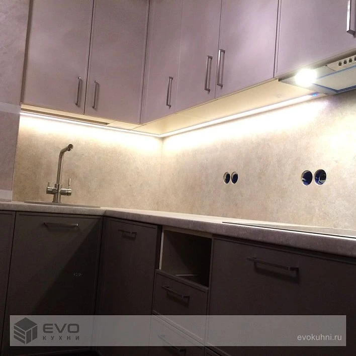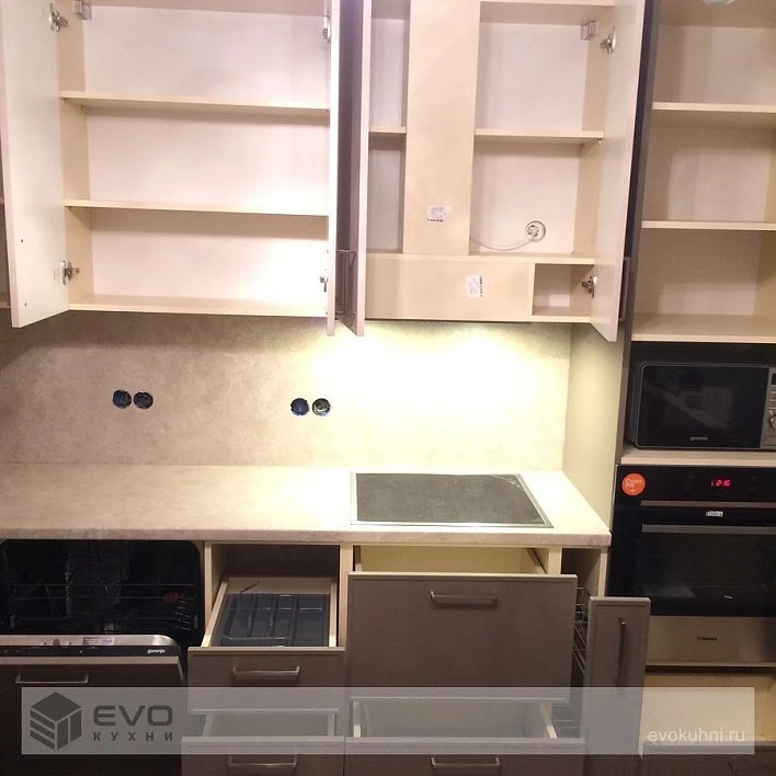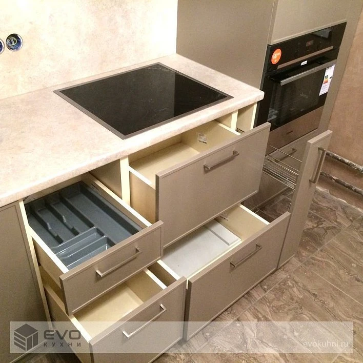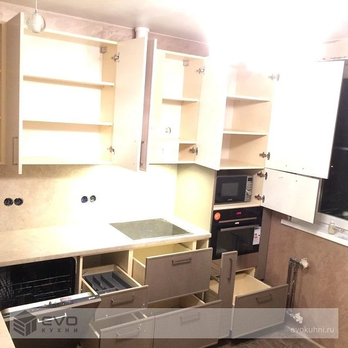 Кухни все изготавливаются по индивидуальному заказу. Мы подготовим дизайн-проект под любое помещение и конфигурацию. В зависимости от выбранных фасадов сможем изготовить нестандартные модули и размеры. Однако есть редкие исключения видов фасадов, по которым невозможны нестандарты, об этом вас предупредит дизайнер при выборе материалов для проекта.