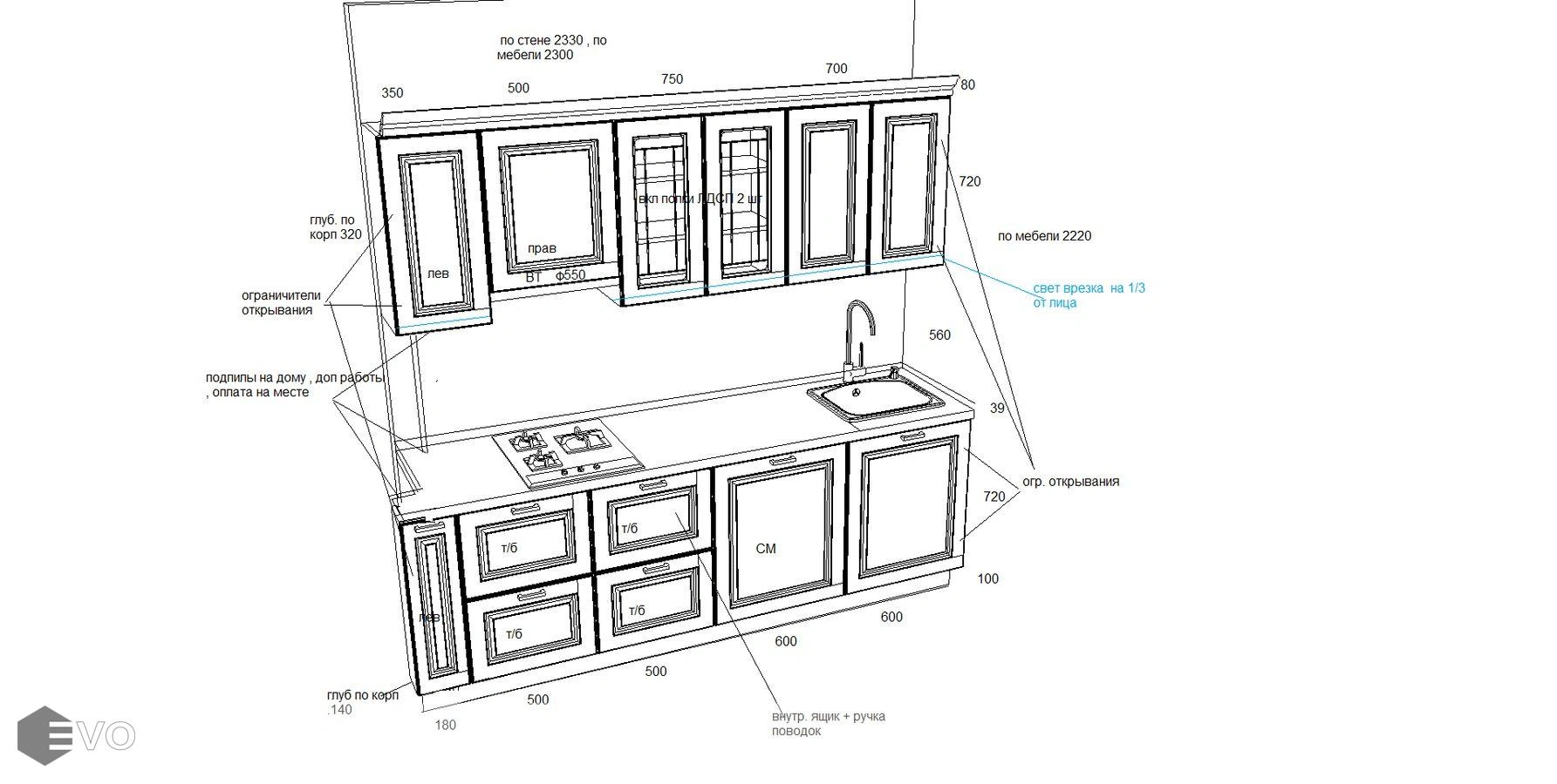 Кухни все изготавливаются по индивидуальному заказу. Мы подготовим дизайн-проект под любое помещение и конфигурацию. В зависимости от выбранных фасадов сможем изготовить нестандартные модули и размеры. Однако есть редкие исключения видов фасадов, по которым невозможны нестандарты, об этом вас предупредит дизайнер при выборе материалов для проекта.