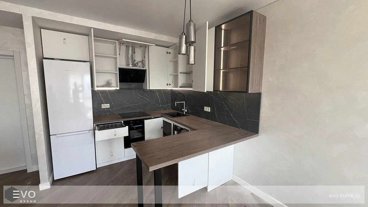 Кухни все изготавливаются по индивидуальному заказу. Мы подготовим дизайн-проект под любое помещение и конфигурацию. В зависимости от выбранных фасадов сможем изготовить нестандартные модули и размеры. Однако есть редкие исключения видов фасадов, по которым невозможны нестандарты, об этом вас предупредит дизайнер при выборе материалов для проекта.