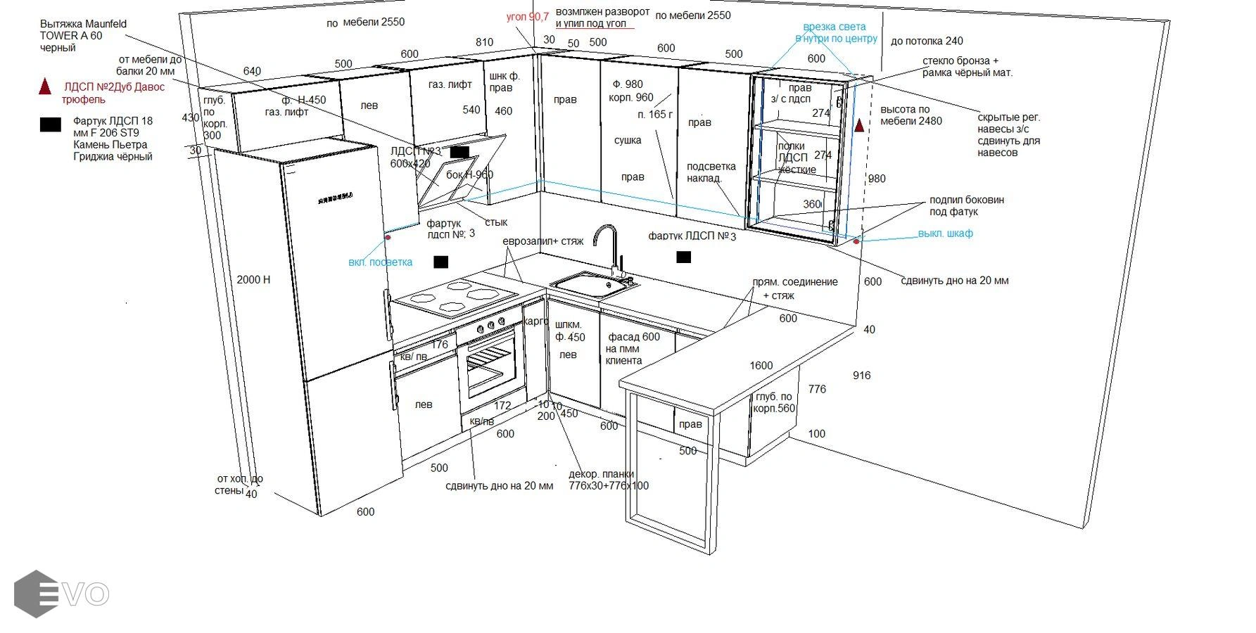 Дизайн-проект, максимально удовлетворяющий вашим пожеланиям, мы делаем бесплатно. Наши менеджеры-дизайнеры помогут вам определиться с моделью вашей будущей кухни, грамотно подберут встраиваемую технику, подберут цветовую гамму самой кухни исходя из стилистики интерьера и пожеланий клиента, составят технически грамотный проект под размеры помещения.