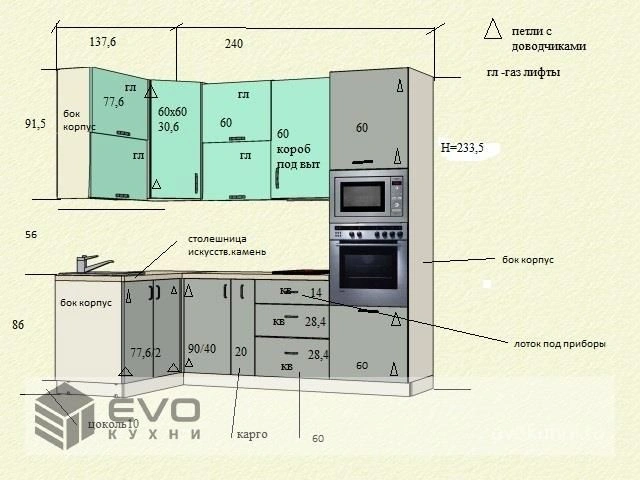 Кухни все изготавливаются по индивидуальному заказу. Мы подготовим дизайн-проект под любое помещение и конфигурацию. В зависимости от выбранных фасадов сможем изготовить нестандартные модули и размеры. Однако есть редкие исключения видов фасадов, по которым невозможны нестандарты, об этом вас предупредит дизайнер при выборе материалов для проекта.