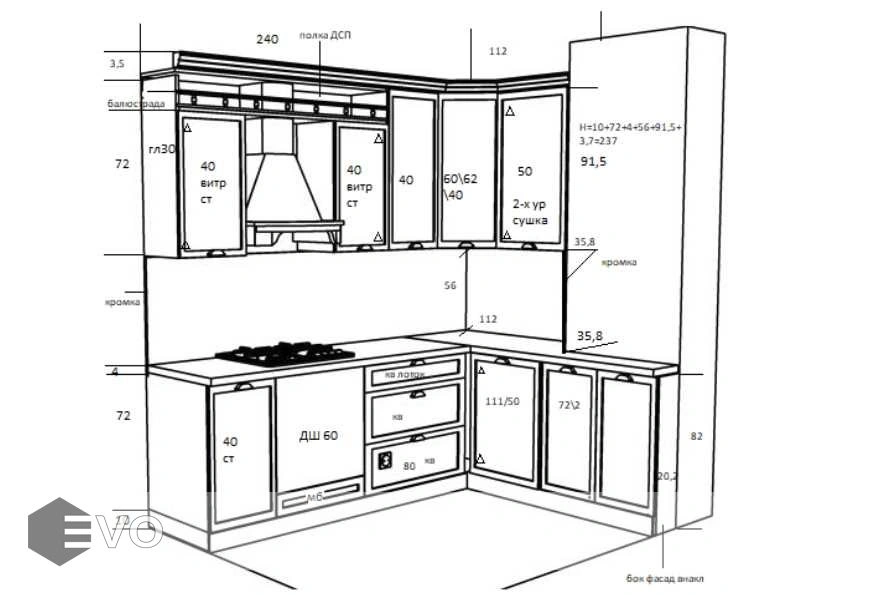 Кухни все изготавливаются по индивидуальному заказу. Мы подготовим дизайн-проект под любое помещение и конфигурацию. В зависимости от выбранных фасадов сможем изготовить нестандартные модули и размеры. Однако есть редкие исключения видов фасадов, по которым невозможны нестандарты, об этом вас предупредит дизайнер при выборе материалов для проекта.