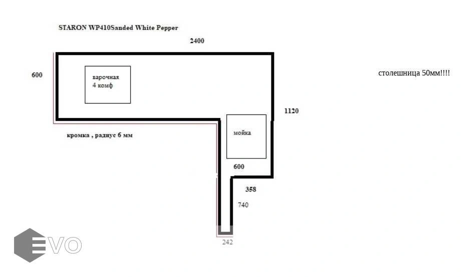 - Столешница: STARON WP410 Sanded White Pepper