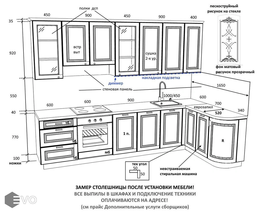 Дизайн-проект, максимально удовлетворяющий вашим пожеланиям, мы делаем бесплатно. Наши менеджеры-дизайнеры помогут вам определиться с моделью вашей будущей кухни, грамотно подберут встраиваемую технику, подберут цветовую гамму самой кухни исходя из стилистики интерьера и пожеланий клиента, составят технически грамотный проект под размеры помещения.