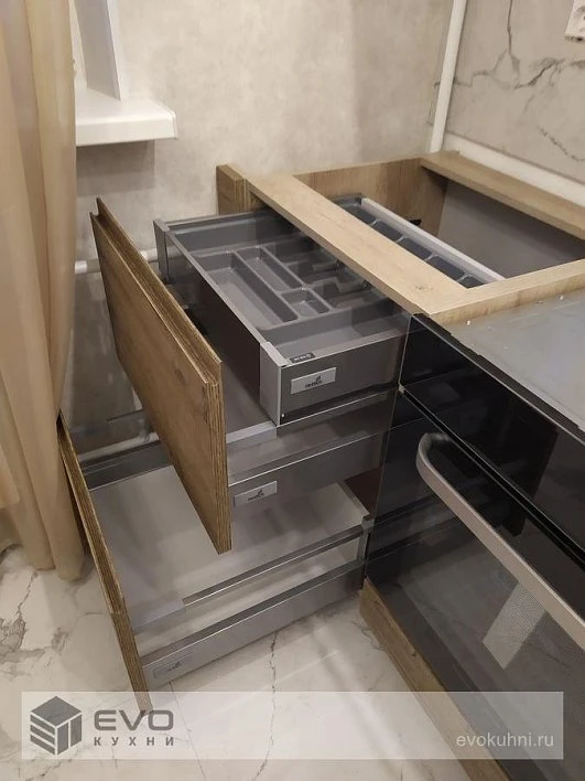 Кухни все изготавливаются по индивидуальному заказу. Мы подготовим дизайн-проект под любое помещение и конфигурацию. В зависимости от выбранных фасадов сможем изготовить нестандартные модули и размеры. Однако есть редкие исключения видов фасадов, по которым невозможны нестандарты, об этом вас предупредит дизайнер при выборе материалов для проекта.