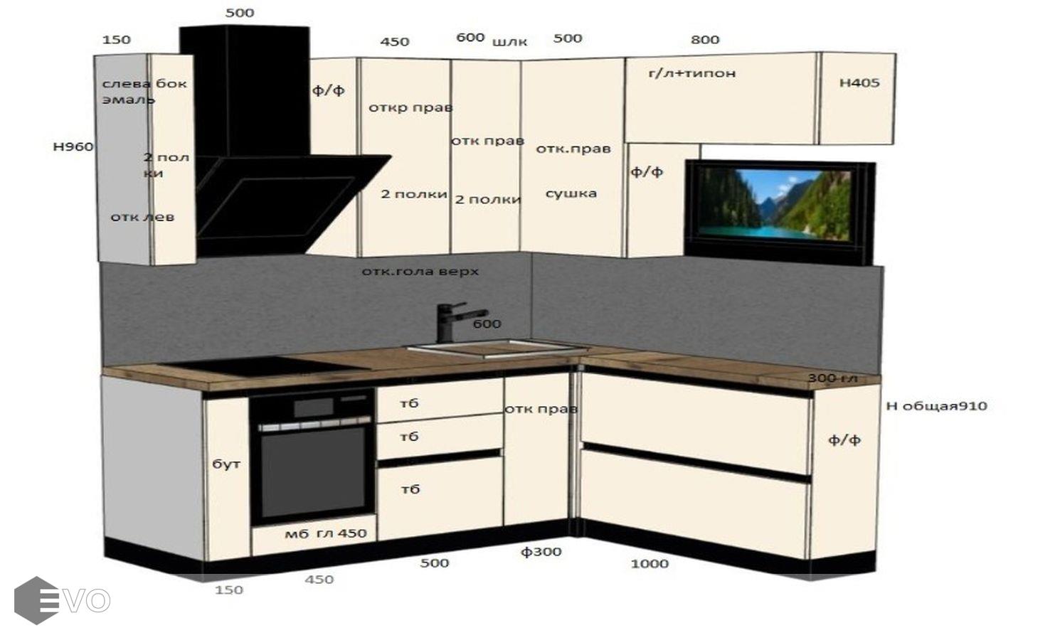 Кухни все изготавливаются по индивидуальному заказу. Мы подготовим дизайн-проект под любое помещение и конфигурацию. В зависимости от выбранных фасадов сможем изготовить нестандартные модули и размеры. Однако есть редкие исключения видов фасадов, по которым невозможны нестандарты, об этом вас предупредит дизайнер при выборе материалов для проекта.