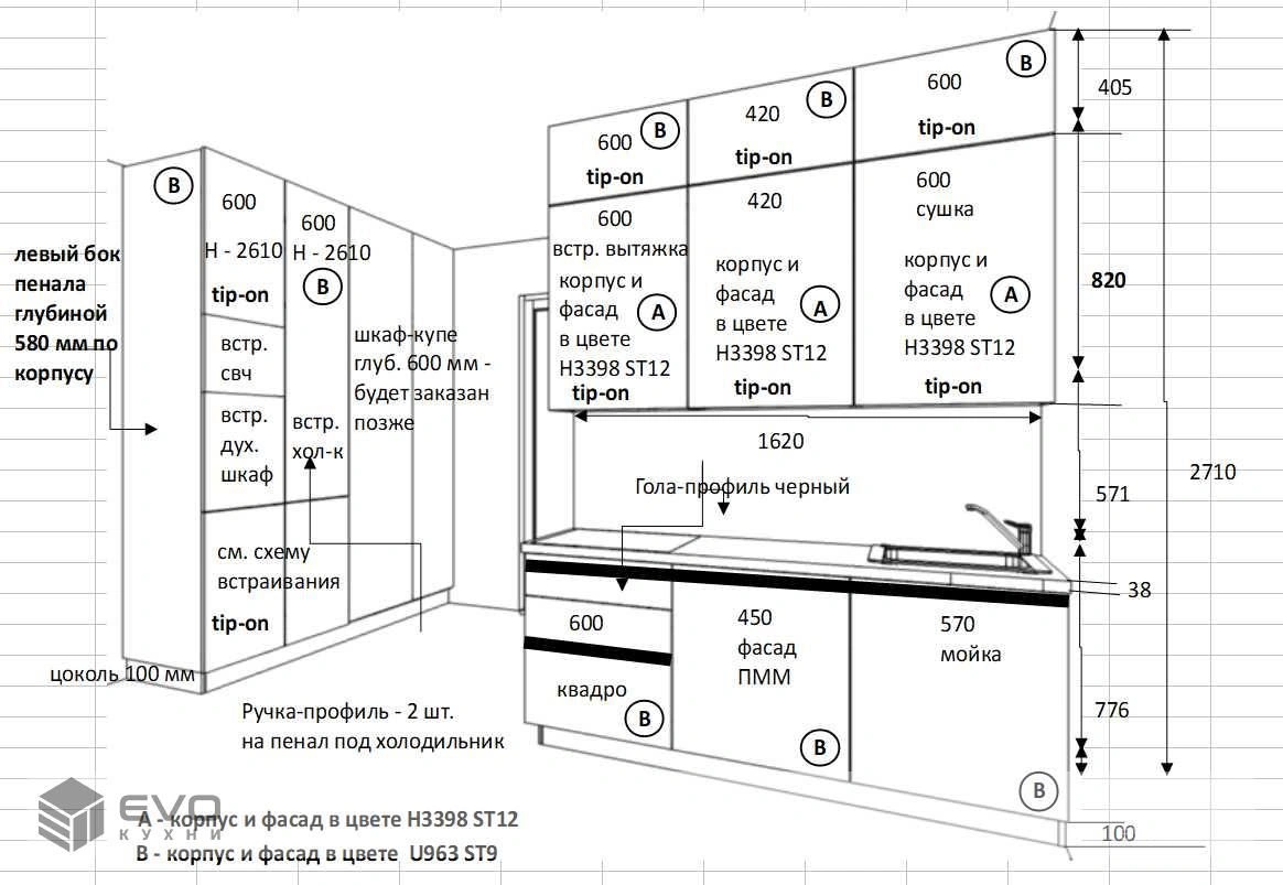 Дизайн-проект, максимально удовлетворяющий вашим пожеланиям, мы делаем бесплатно. Наши менеджеры-дизайнеры помогут вам определиться с моделью вашей будущей кухни, грамотно подберут встраиваемую технику, подберут цветовую гамму самой кухни исходя из стилистики интерьера и пожеланий клиента, составят технически грамотный проект под размеры помещения.