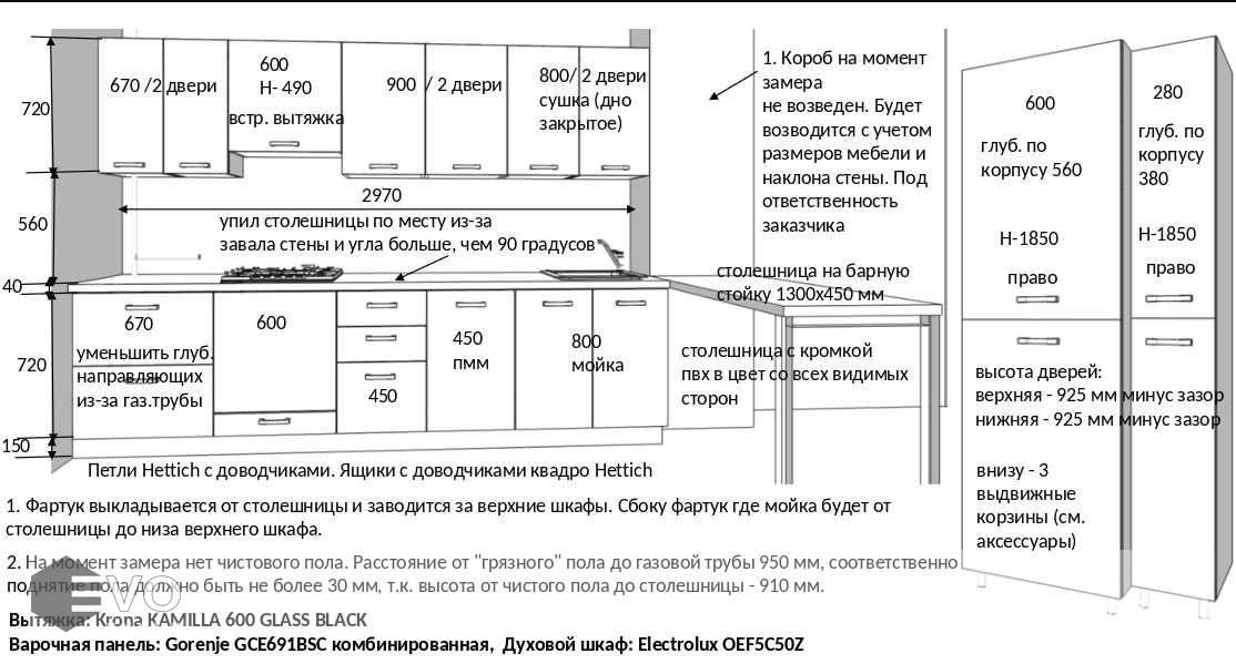 Дизайн-проект, максимально удовлетворяющий вашим пожеланиям, мы делаем бесплатно. Наши менеджеры-дизайнеры помогут вам определиться с моделью вашей будущей кухни, грамотно подберут встраиваемую технику, подберут цветовую гамму самой кухни исходя из стилистики интерьера и пожеланий клиента, составят технически грамотный проект под размеры помещения.