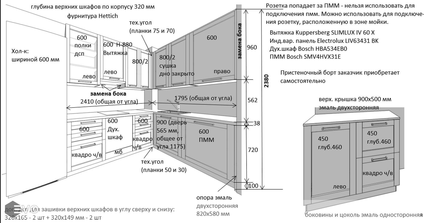Дизайн-проект, максимально удовлетворяющий вашим пожеланиям, мы делаем бесплатно. Наши менеджеры-дизайнеры помогут вам определиться с моделью вашей будущей кухни, грамотно подберут встраиваемую технику, подберут цветовую гамму самой кухни исходя из стилистики интерьера и пожеланий клиента, составят технически грамотный проект под размеры помещения.