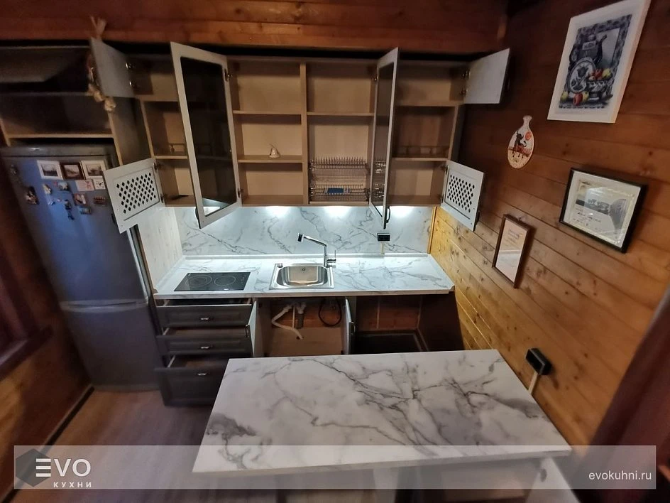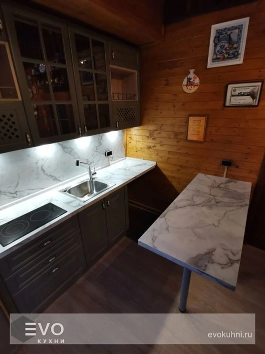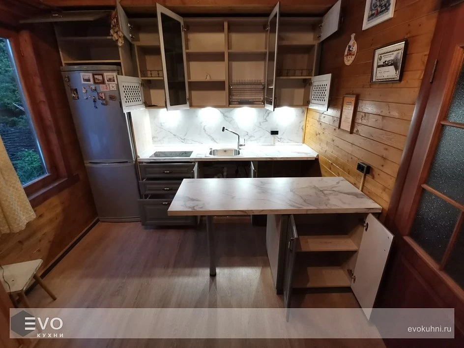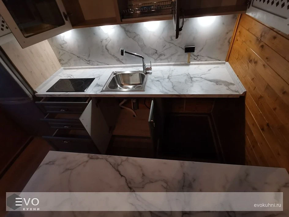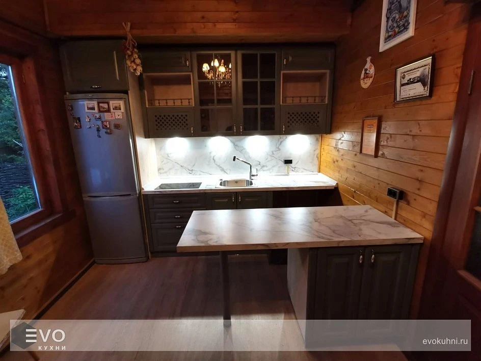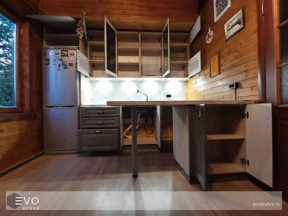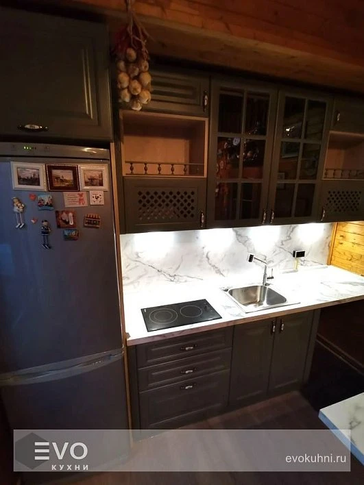 Кухни все изготавливаются по индивидуальному заказу. Мы подготовим дизайн-проект под любое помещение и конфигурацию. В зависимости от выбранных фасадов сможем изготовить нестандартные модули и размеры. Однако есть редкие исключения видов фасадов, по которым невозможны нестандарты, об этом вас предупредит дизайнер при выборе материалов для проекта.