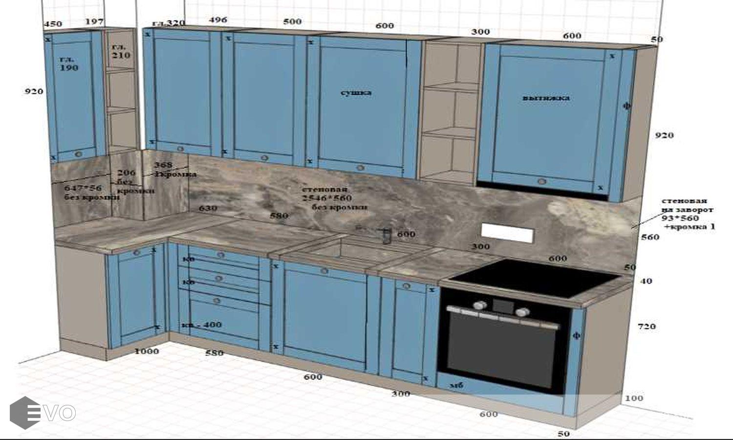 Кухни все изготавливаются по индивидуальному заказу. Мы подготовим дизайн-проект под любое помещение и конфигурацию. В зависимости от выбранных фасадов сможем изготовить нестандартные модули и размеры. Однако есть редкие исключения видов фасадов, по которым невозможны нестандарты, об этом вас предупредит дизайнер при выборе материалов для проекта.
