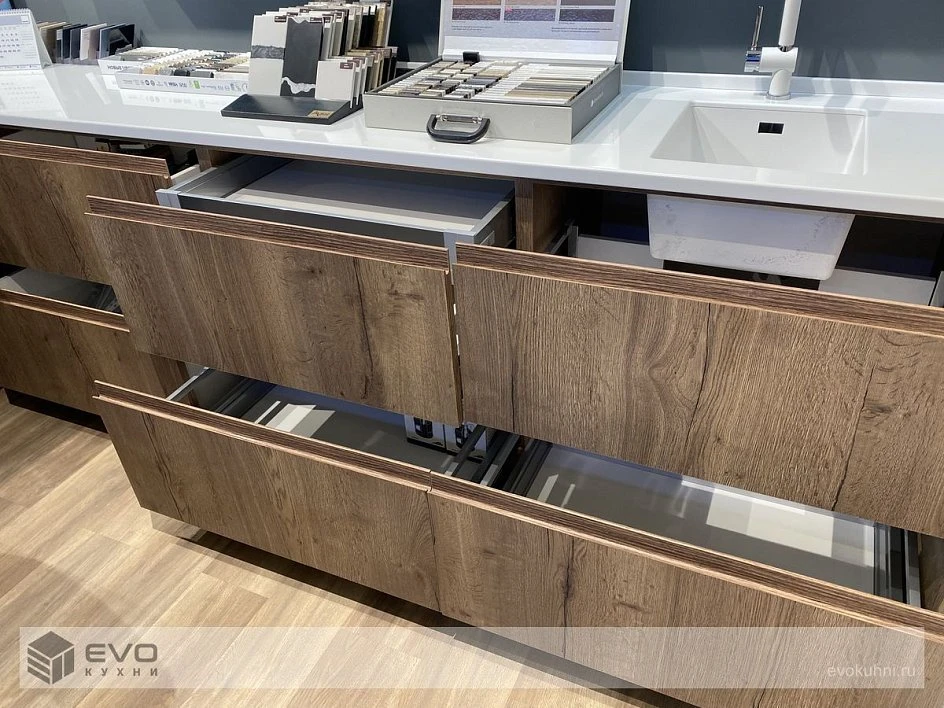 | Фасады: | МДФ Пластик Эмаль Интегрированная ручка |