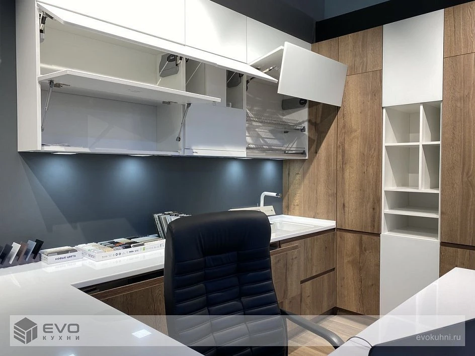 Кухни все изготавливаются по индивидуальному заказу. Мы подготовим дизайн-проект под любое помещение и конфигурацию. В зависимости от выбранных фасадов сможем изготовить нестандартные модули и размеры. Однако есть редкие исключения видов фасадов, по которым невозможны нестандарты, об этом вас предупредит дизайнер при выборе материалов для проекта.