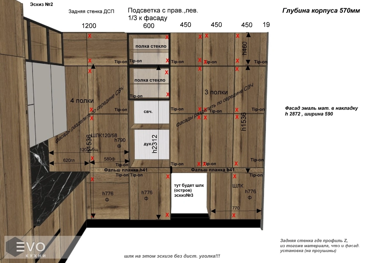 Дизайн-проект, максимально удовлетворяющий вашим пожеланиям, мы делаем бесплатно. Наши менеджеры-дизайнеры помогут вам определиться с моделью вашей будущей кухни, грамотно подберут встраиваемую технику, подберут цветовую гамму самой кухни исходя из стилистики интерьера и пожеланий клиента, составят технически грамотный проект под размеры помещения.