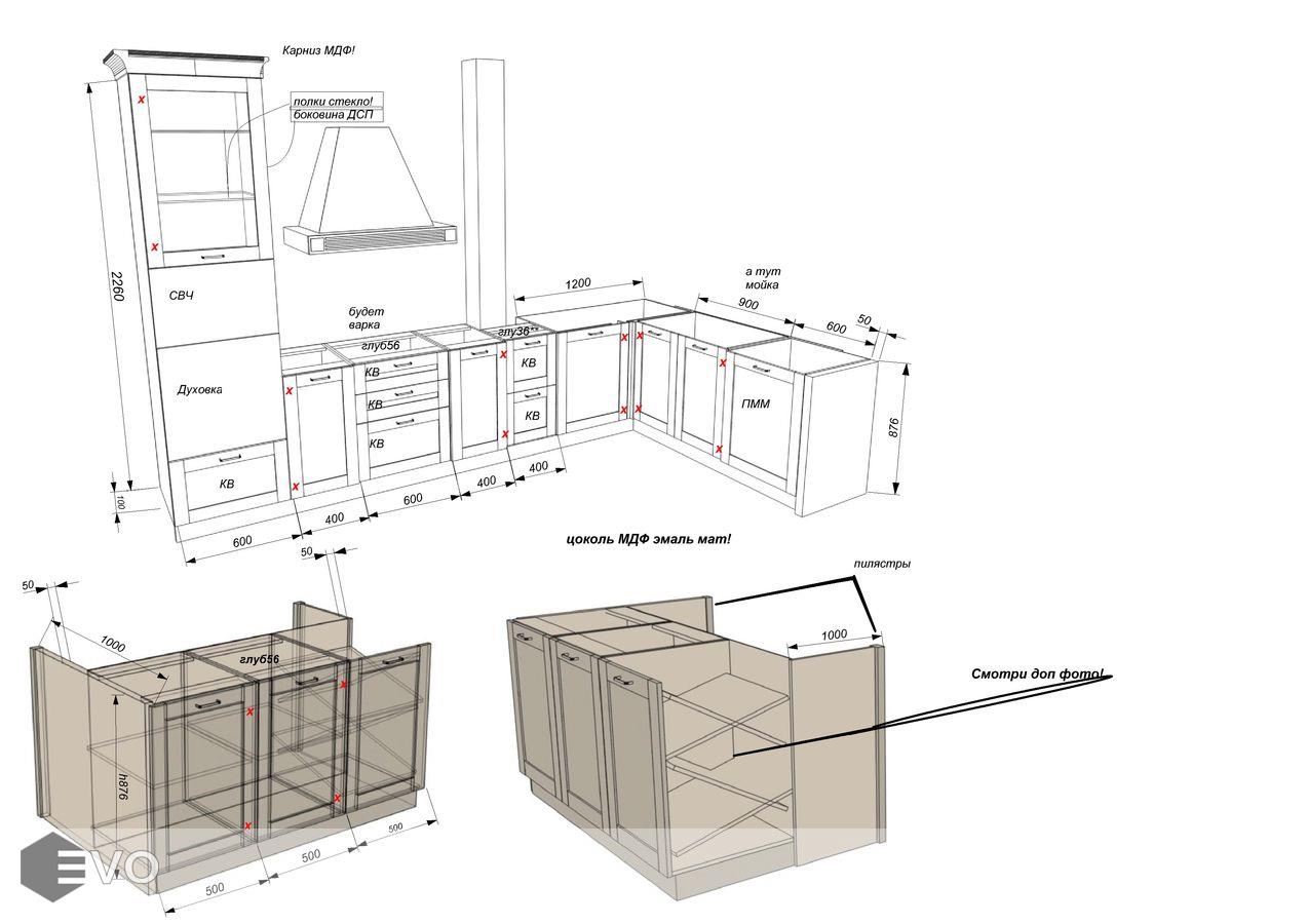 Кухни все изготавливаются по индивидуальному заказу. Мы подготовим дизайн-проект под любое помещение и конфигурацию. В зависимости от выбранных фасадов сможем изготовить нестандартные модули и размеры. Однако есть редкие исключения видов фасадов, по которым невозможны нестандарты, об этом вас предупредит дизайнер при выборе материалов для проекта.