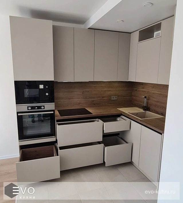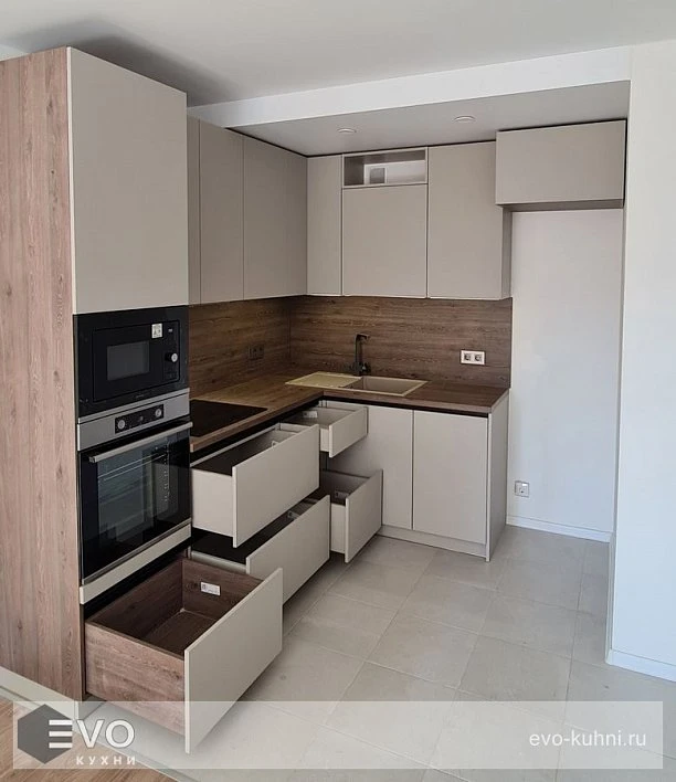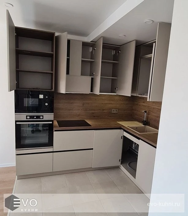 Кухни все изготавливаются по индивидуальному заказу. Мы подготовим дизайн-проект под любое помещение и конфигурацию. В зависимости от выбранных фасадов сможем изготовить нестандартные модули и размеры. Однако есть редкие исключения видов фасадов, по которым невозможны нестандарты, об этом вас предупредит дизайнер при выборе материалов для проекта.