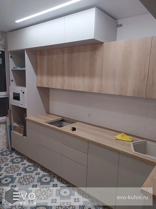 Кухни все изготавливаются по индивидуальному заказу. Мы подготовим дизайн-проект под любое помещение и конфигурацию. В зависимости от выбранных фасадов сможем изготовить нестандартные модули и размеры. Однако есть редкие исключения видов фасадов, по которым невозможны нестандарты, об этом вас предупредит дизайнер при выборе материалов для проекта.