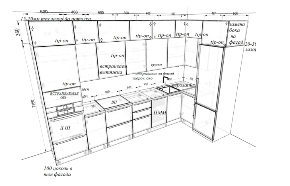 Дизайн-проект, максимально удовлетворяющий вашим пожеланиям, мы делаем бесплатно. Наши менеджеры-дизайнеры помогут вам определиться с моделью вашей будущей кухни, грамотно подберут встраиваемую технику, подберут цветовую гамму самой кухни исходя из стилистики интерьера и пожеланий клиента, составят технически грамотный проект под размеры помещения.
